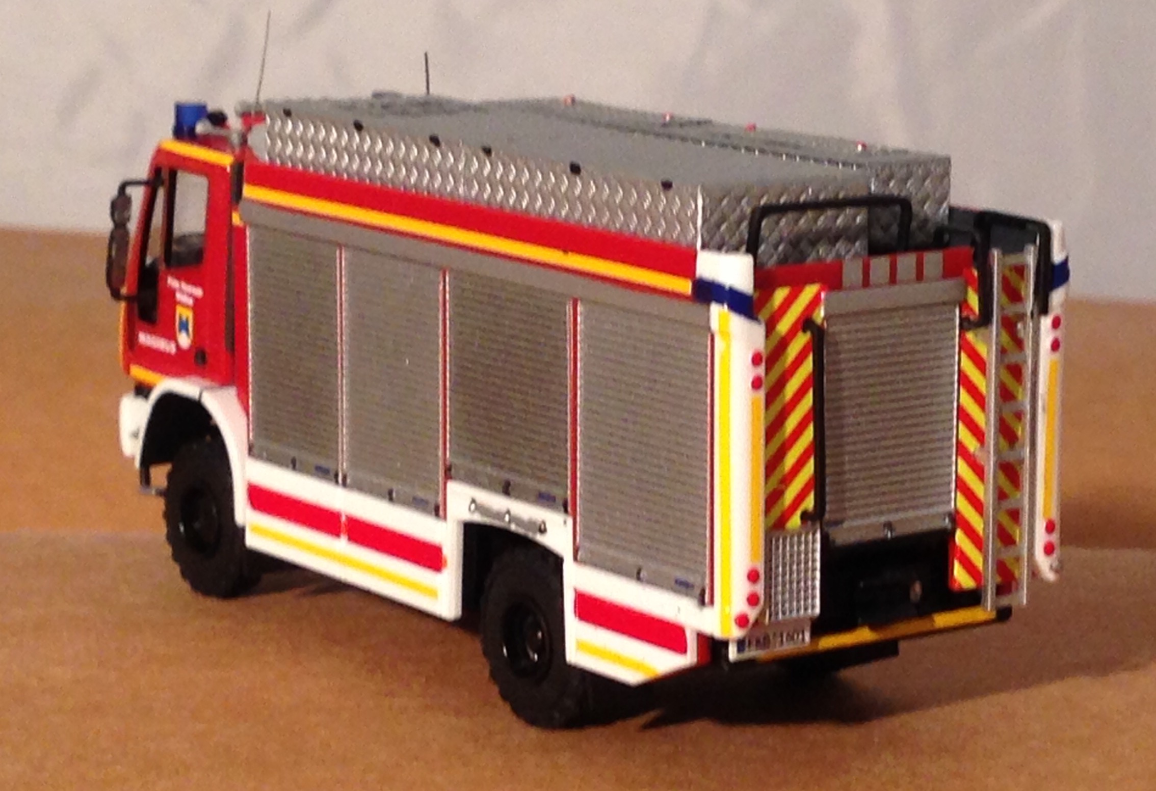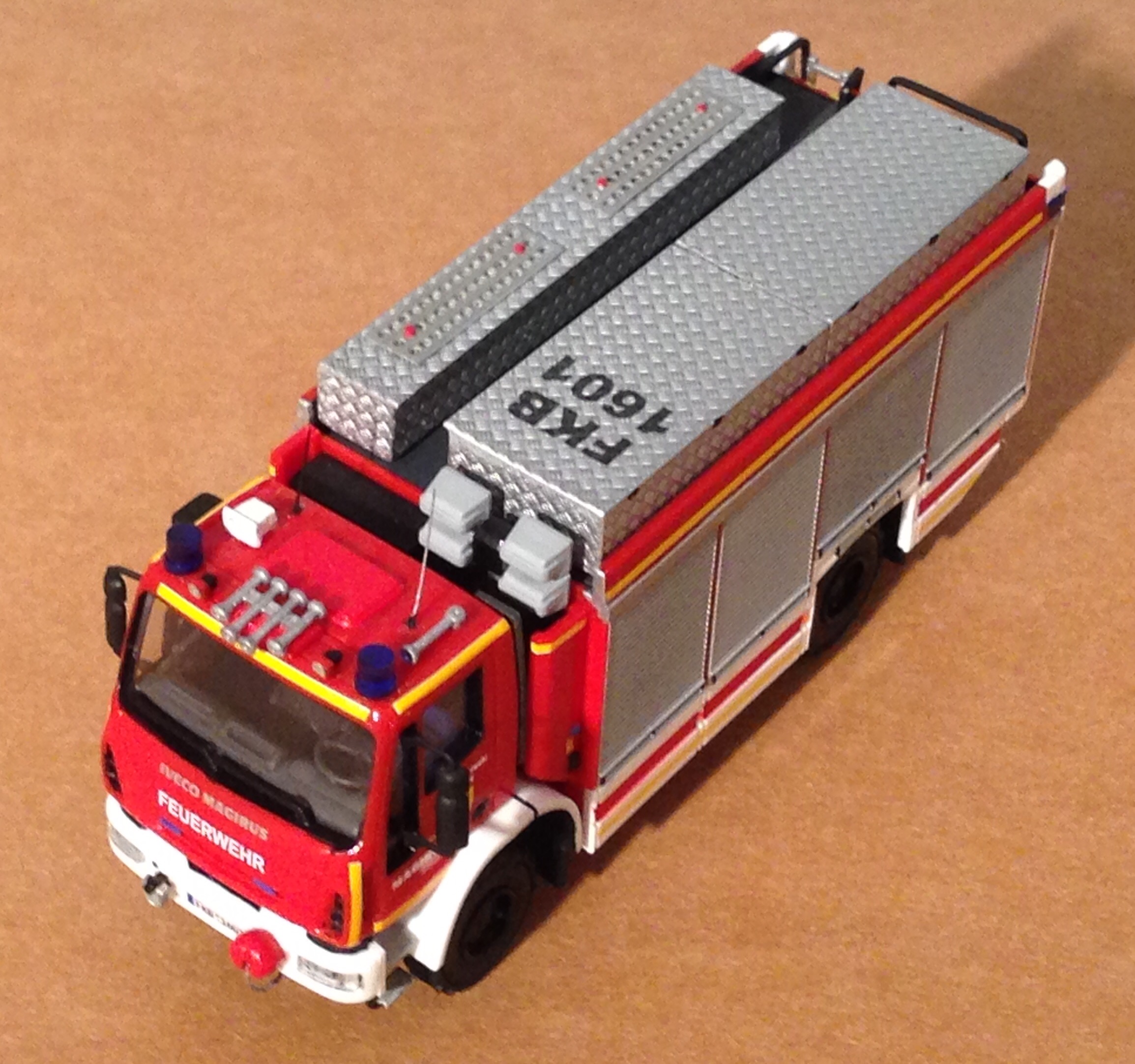1. Stammen die Blaulichtbalken vom ELW von Rietze (70252 LED Blaulichtbalken)? Hast du sie in der Mitte lediglich mit schwarzer Farbe oder einem Decal versehen?Ja, es sind die Rietze, mittelbereich schwarz lackiert, oben drauf eine silbernes decal