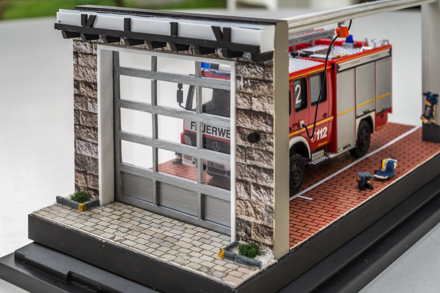 Einzig der spiegelnde Boden in der Fahrzeughalle stört etwas die Illusion. Vielleicht ja aber auch nur auf den Fotos.