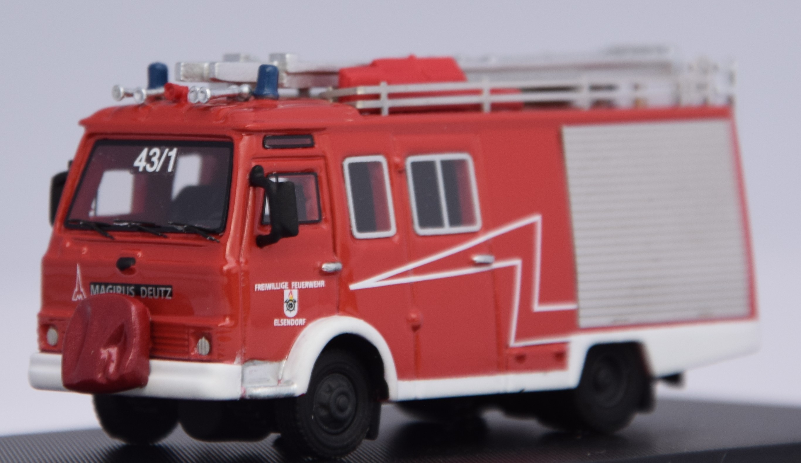 Ein Vergleich mit den Maßzeichnungen für den Großraumtransporter dieser Baureihe (am Ende des von Herrn Burkhart dankenswerter Weise auf der Website des Iveco-Magirus-Museums eingestellten Verkaufsprospekts) sollte das deutlich machen. Daran ändert auch nichts, dass der Prospekt die alte Variante mit den senkrecht angeordneten Türgriffen und die schmalen vorderen Kotflügel zeigt. Da trifft das Modell aus dem Hause Brekina - mitunter ja auch nicht immer hundertprozentig stilsicher bei der Wiedergabe von Originalvorlagen - Form und Charakter des Magirus-Deutz Transporter-Fahrerhauses um Längen besser.
