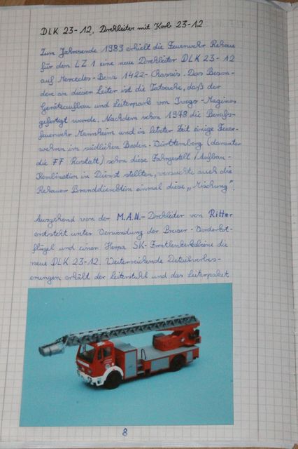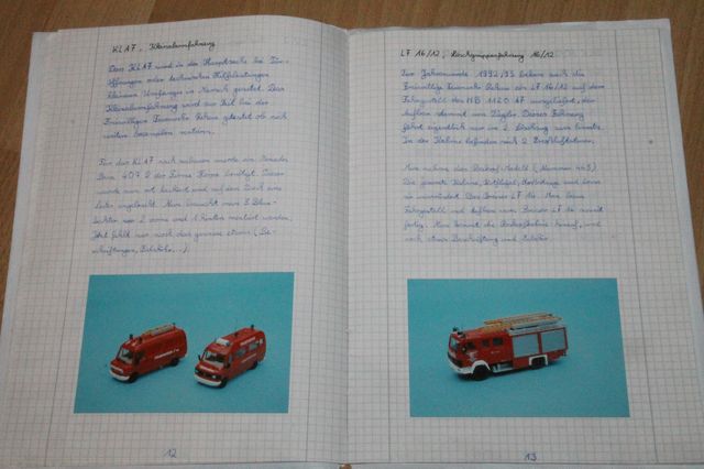 Dafür habe ich aber noch dieses Heft. Per Hand geschrieben, mit Erläuterungen, einen Baubericht sowie je einem Foto zu jedem Fahrzeug!