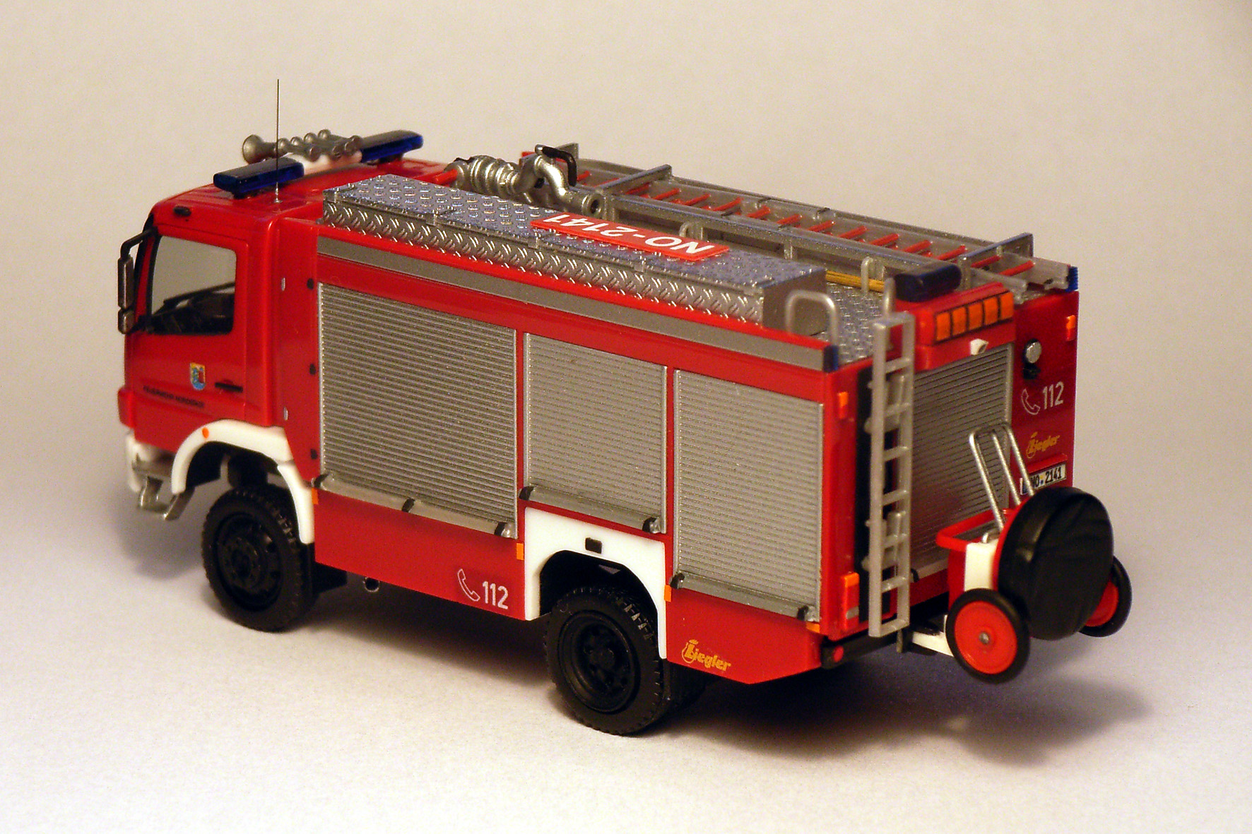 Ein MB Atego 1428AF/Ziegler, Baujahr 2006, interne Bezeichnung TLF 9. Das Fahrzeug ist auf der FRW im Nordosten der Stadt stationiert, in einer Gegend mit tlw. schlechter Wasserversorgung auf dem "flachen Land", aber einem boomenden Gewerbegebiet! Die Lüfterhaspel wird nur bei entsprechendem Alarmstichwort aufgeprotzt; in der Regel wird eine normale EPH Schlauch mitgeführt!