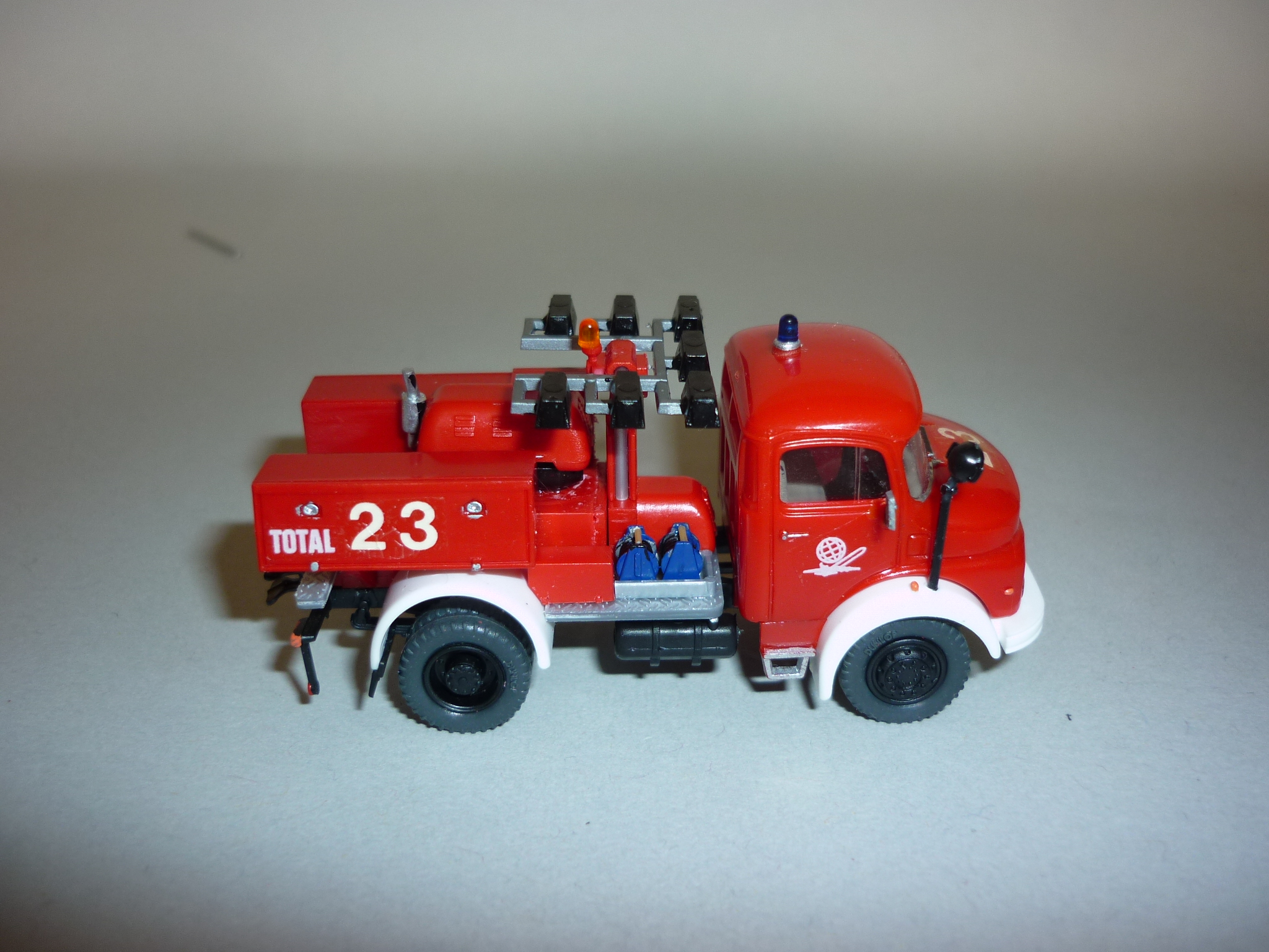 Zum Modell: Wieder alles Preiser, diesmal sogar eine Flughafen DLK, die mit der großen Kabine un somit auch mit 240 PS ausgestattet wurde. Die Foxtrott Nummer wird wahrscheinlich noch an den Leiterpark angebracht, da sie bei geöffneten Rollo nicht mehr erkennbar ist und dort auch schnell verschleißt.
