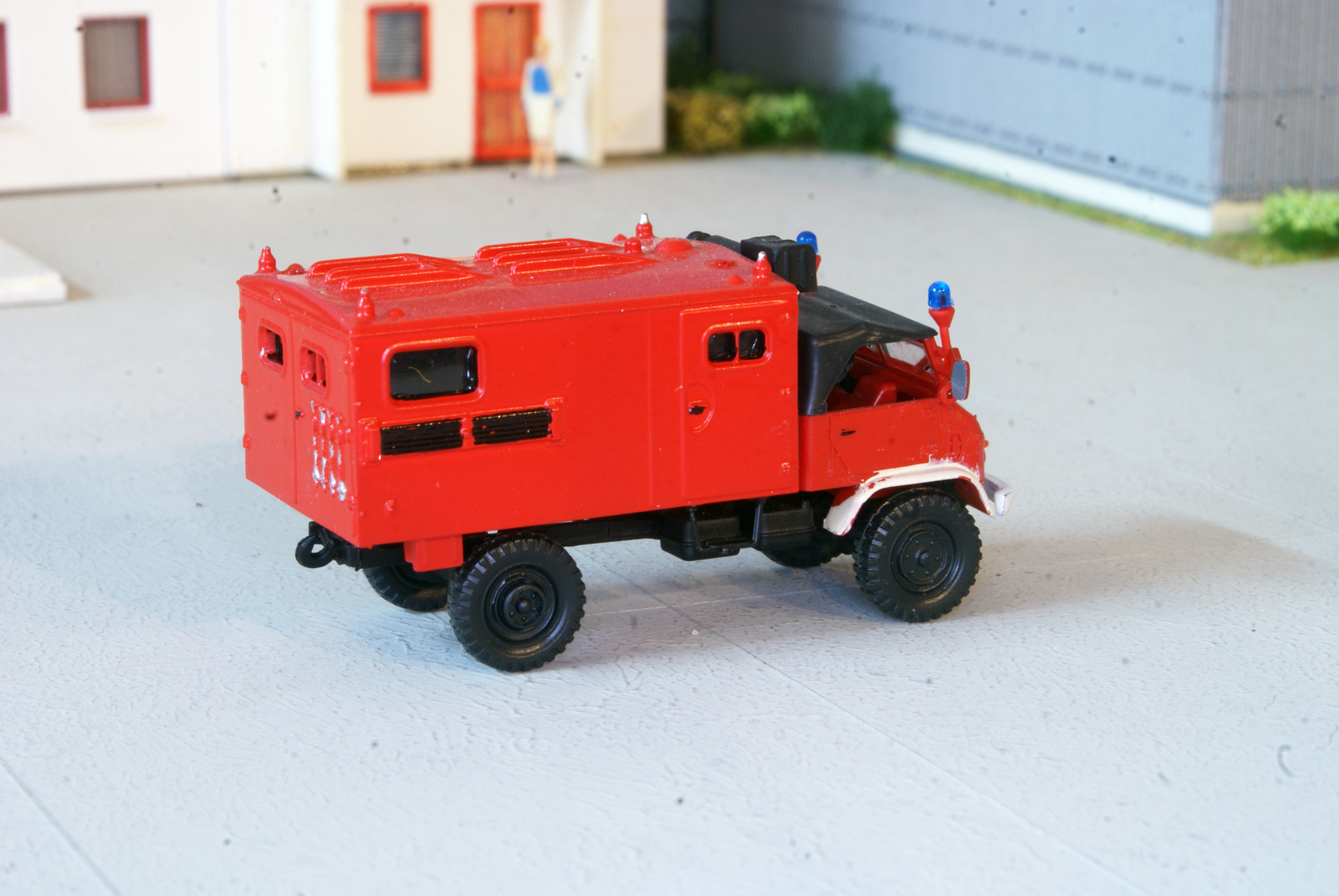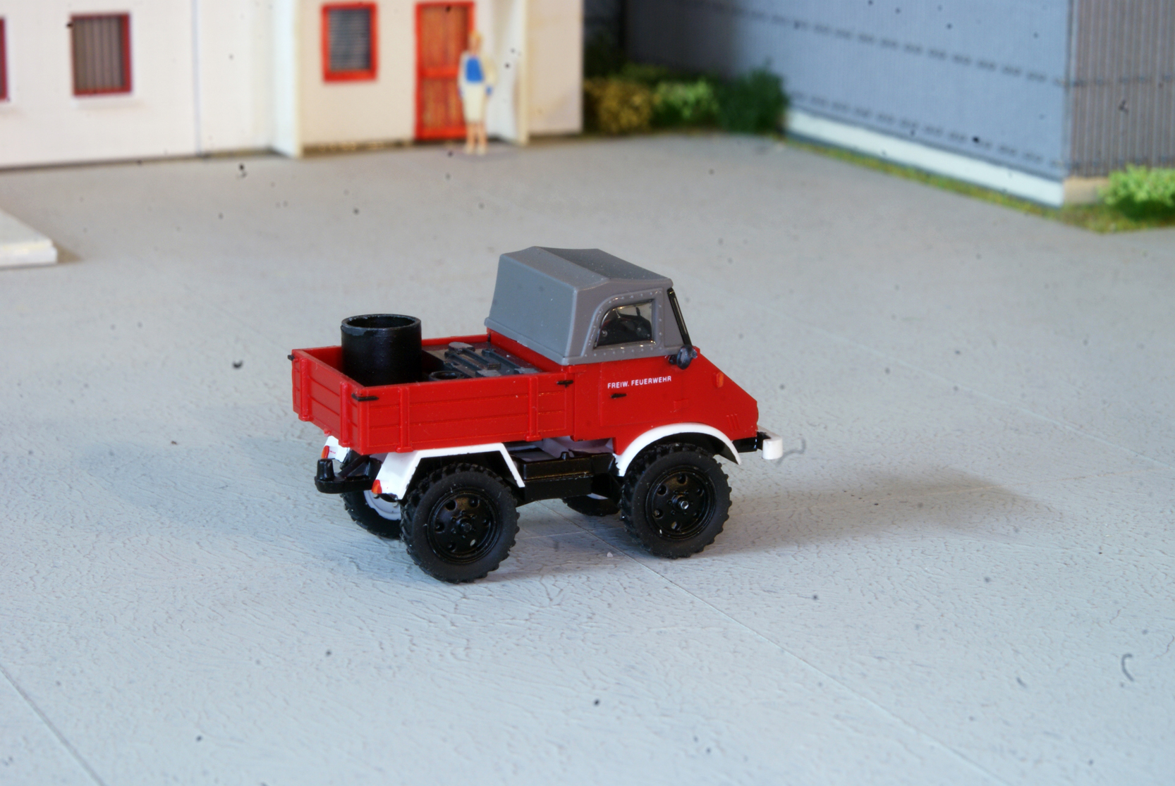 Container: Schwarze Teilen jetzt Alu/Silber angemalt. Feuewehr Decal.