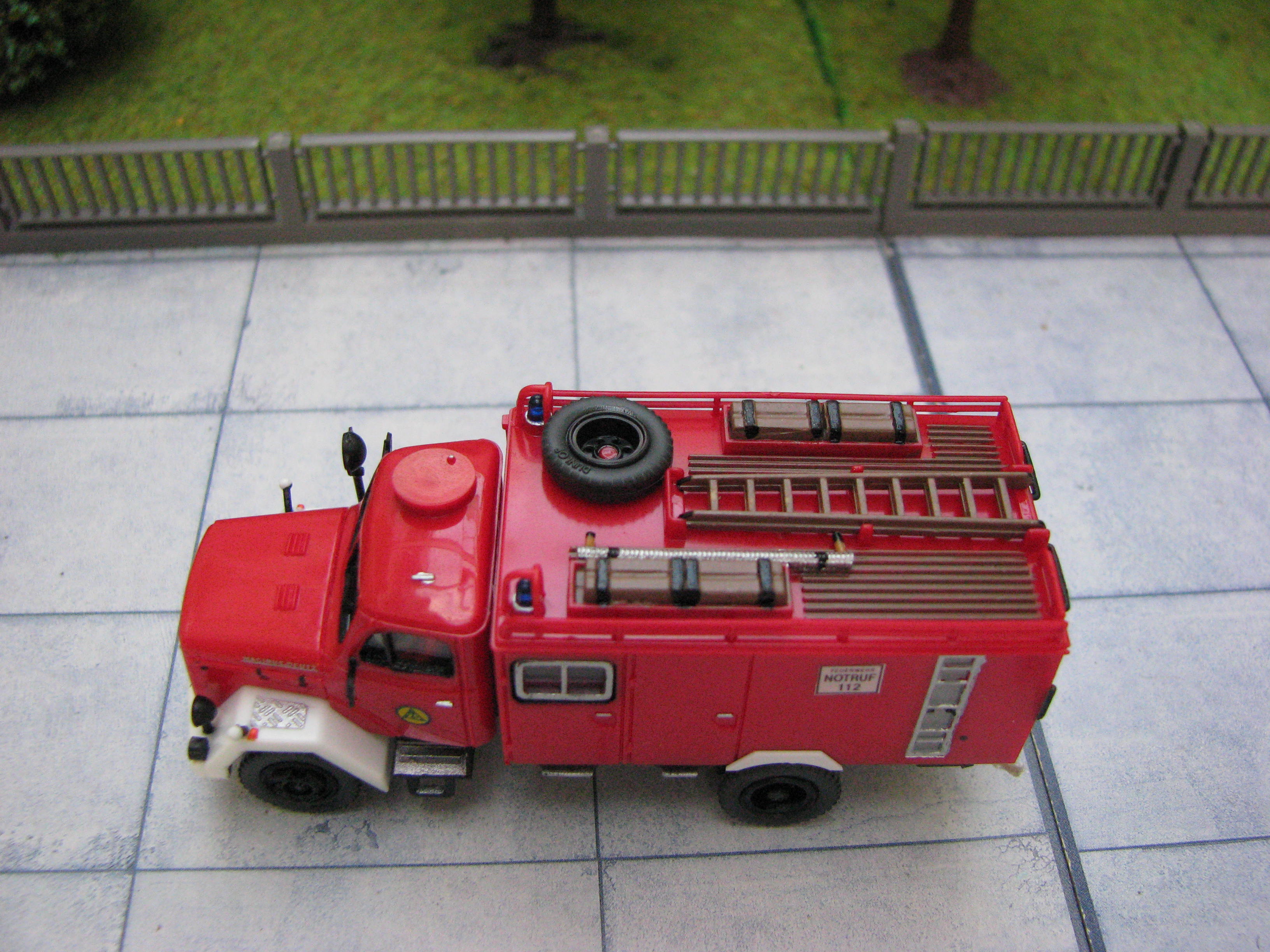 So das Grundmodell war das Roco TLF 8 Braunschweig. Der Aufbau stammt von MEK. Kleinteile von Roco und Preiser.