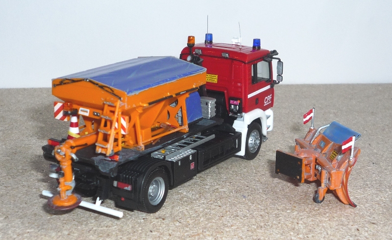 @ Olli: Ja, die Spritzlappen kenn ich, die hat er auch: Fahrerseitig am Streuerbehälter sind zwei schwarze Gummischmutzfänger verstaut, die dann mittels Ketten hinten am AB eingehangen werden müssen! Da das Foto ja nur für die Pressestelle heute gemacht wurde, hat der Maschinist das doch glatt vergessen