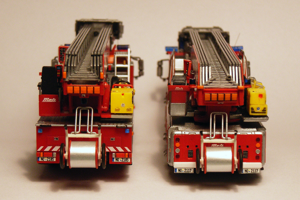Na das kann sich doch sehen lassen. Das Heck ist Dir echt gut gelungen, und auch die Beladung am Leiterkranz sieht gut aus. Hättest Du jetzt noch die schwarze Gummierung auf den einzelnen Sprossen drauf gemacht, hätte ich Dir eine 1+ gegeben. So ist es Leider nur noch eine 1.