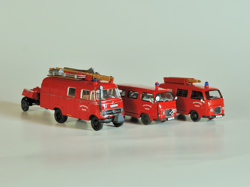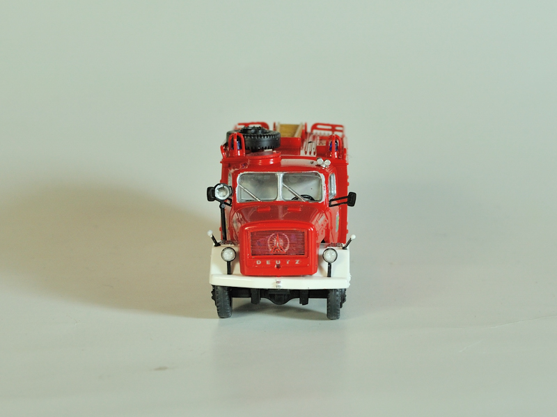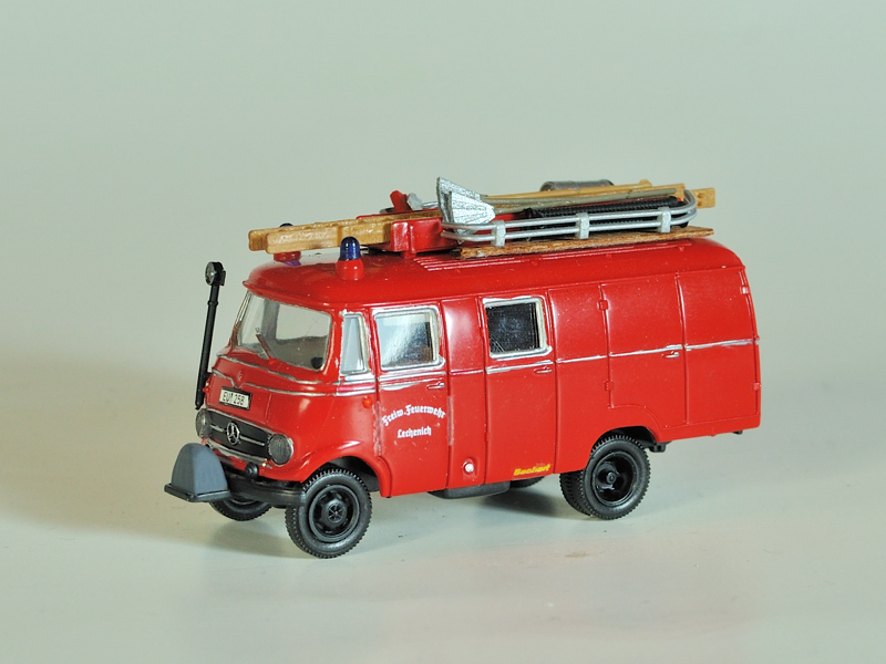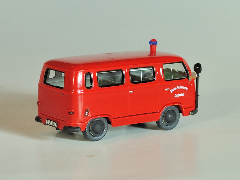 Der Originalaufbau ist bombiert, der Preiser-Aufbau trapezförmig. Für die Modellumsetzung mußte daher ein Roco-Magirus-LF dran glauben, das von den Abmessungen her erstaunlich gut paßt.
