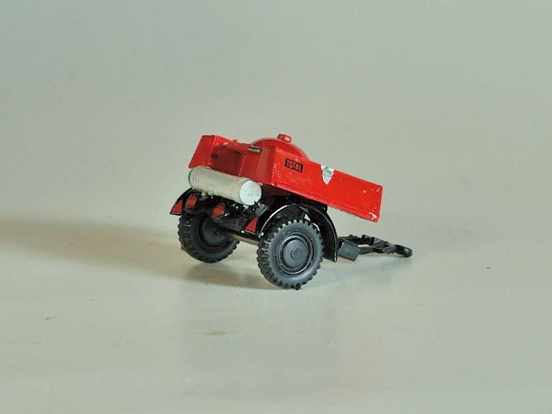 Die Originalkabine hat unterhalb der Fenster "Backen", die Preiser-Kabine ist glatt. Die Modellkabine entstand daher aus einer gekürzten Kleinserien-Gruppenkabine, die das auch hat (Hersteller=?) mit einer Preiser-Haube (der gegossene Kühlergrill war nix.).