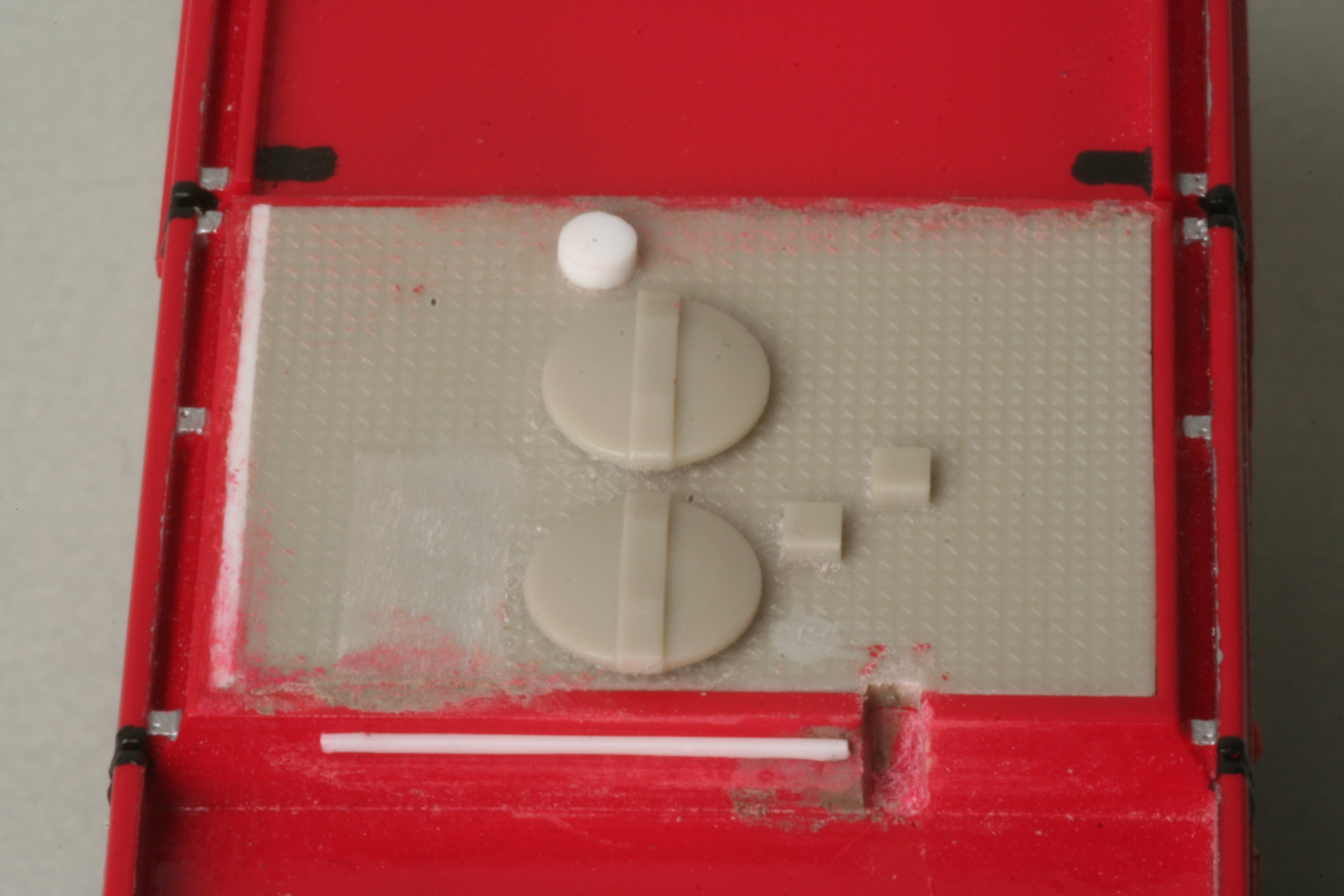 Dadurch war es möglich, die Abdeckung der Klimaanlage mit einem Blech von FKS so nach zu bauen, dass man entsprechend dem Original durch die Öffnungen schauen kann. Hierzu betrachte man das rechte Bild.