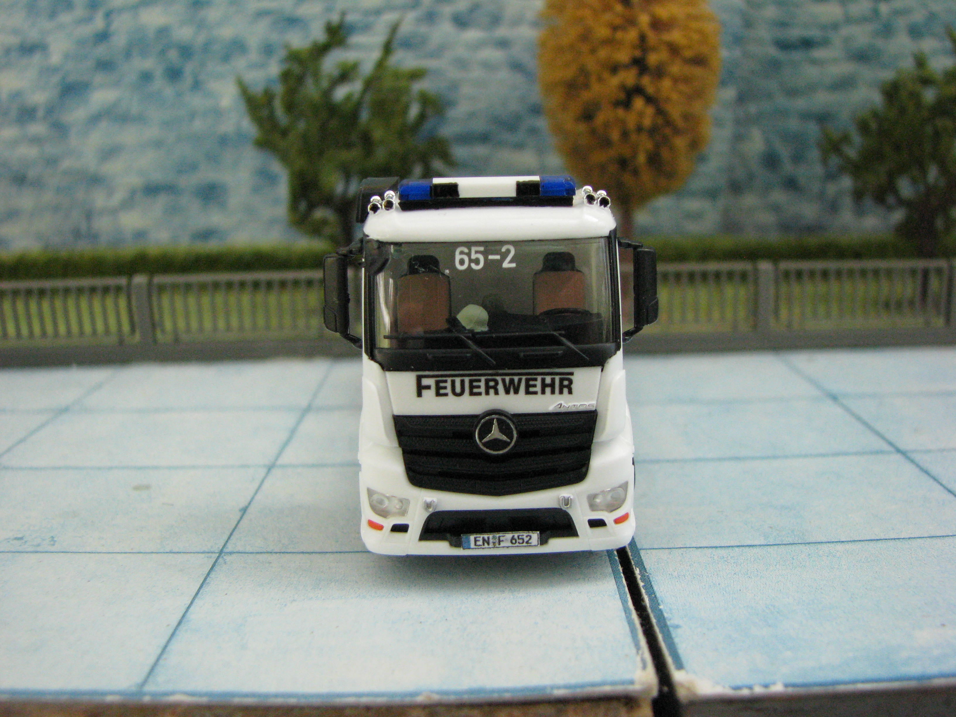 Über Sinn oder Unsinn der "weißen Serie" mag man geteilter Meinung sein, wie ja schon öfters zu lesen, aber es ist wie es ist: Weiß mit schwarzer Beschriftung und Blaulicht oben drauf sieht einfach gut aus, da macht der Antos keine Ausnahme. Sehr schön, gefällt mir.
