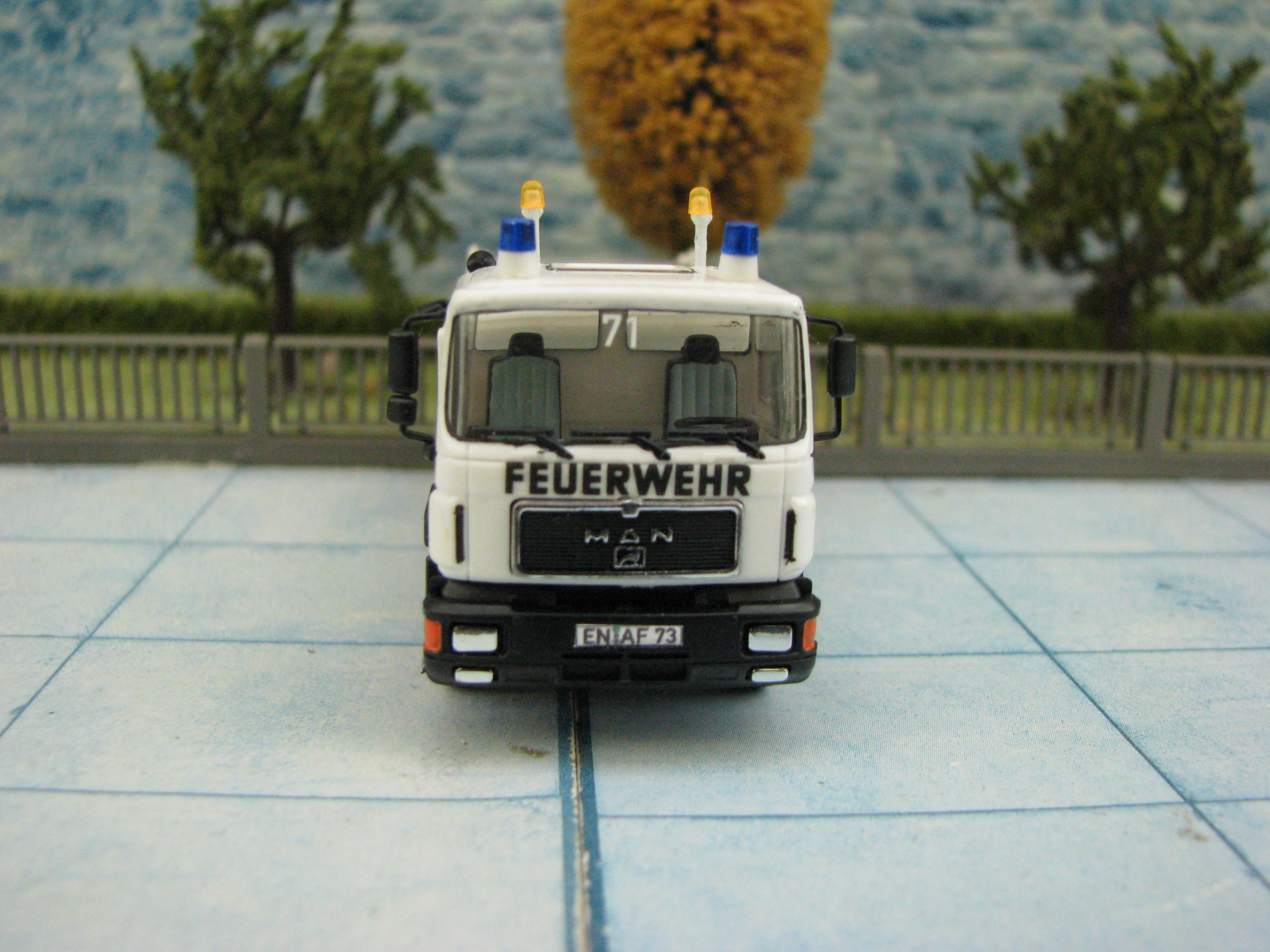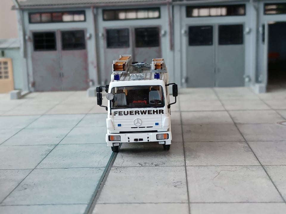 Das Modell entstand aus einem Preiser Bausatz 31280, weißer Kabine vom LF 16 und weißem Austausch Aufbau. Dazu Kleinteile, Farbe und Decals.