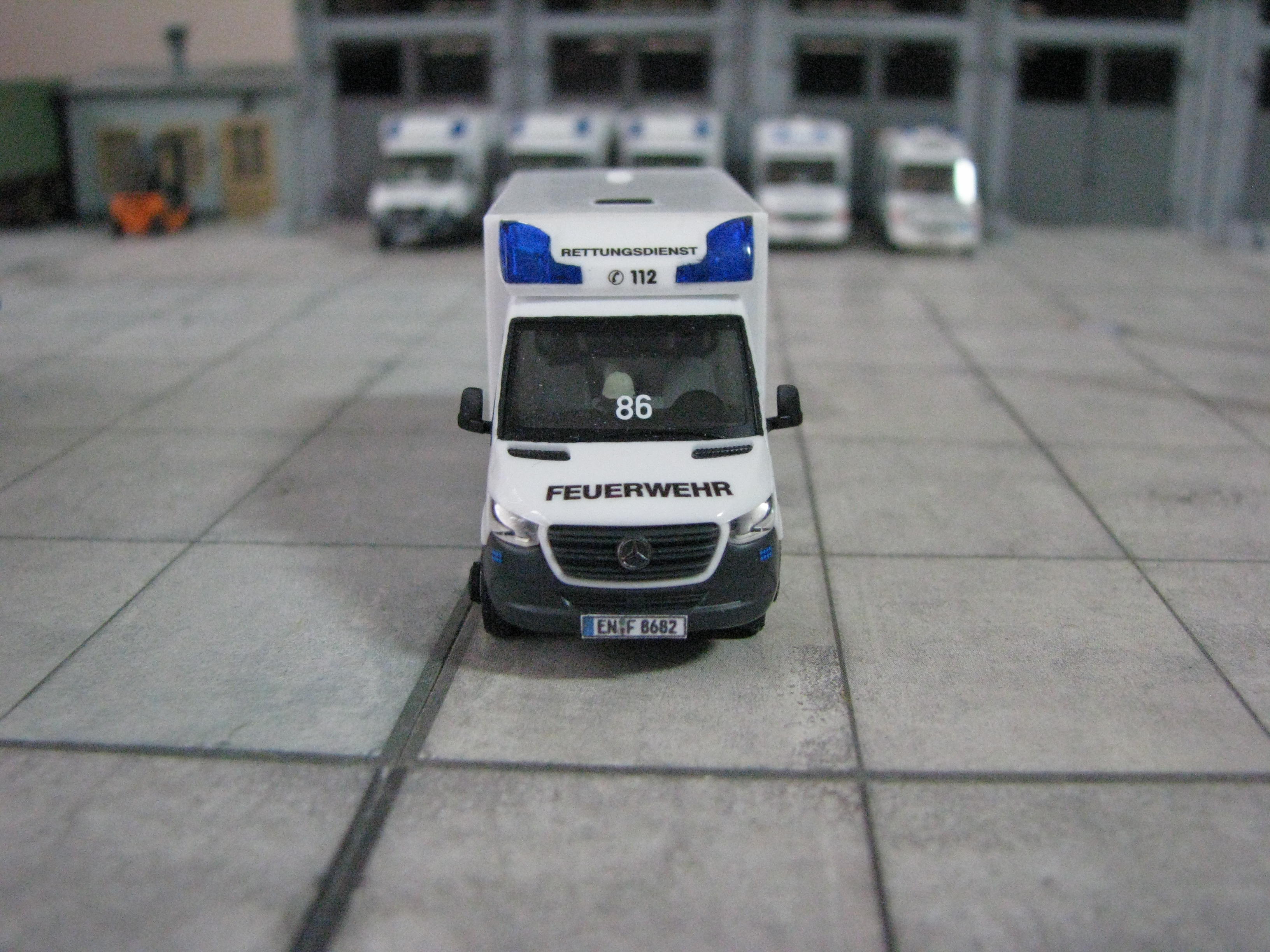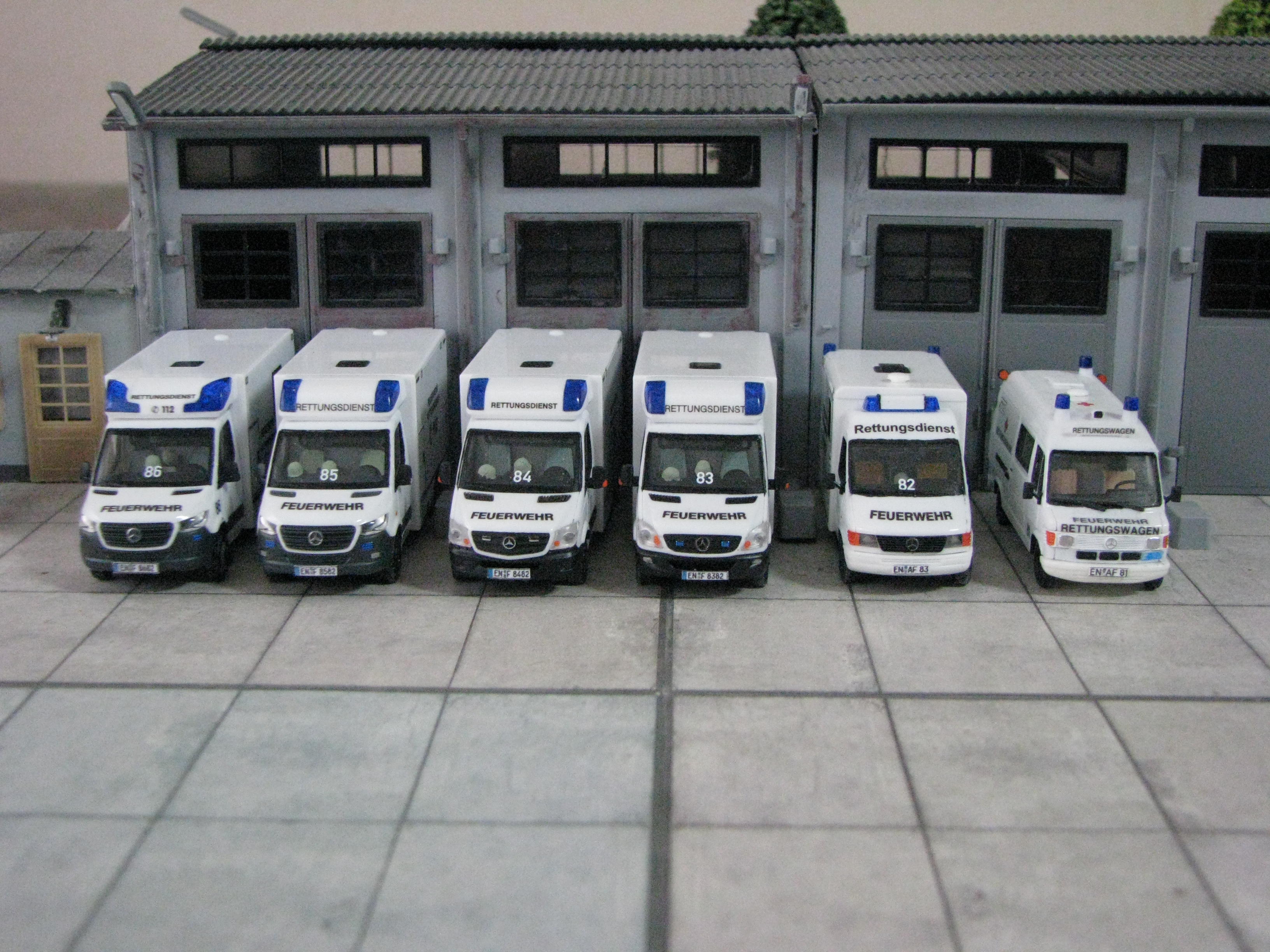 Und hier mal ein Gruppenbild der vorhandenen RTW´s. Natürlich sind die beiden rechten schon lange nicht mehr im Dienst.