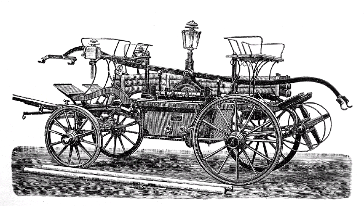 Damals sind unsere Feuerwehrleute noch mit Spritzen und Leiterwagen ausgerückt, die von Pferden gezogen wurden.