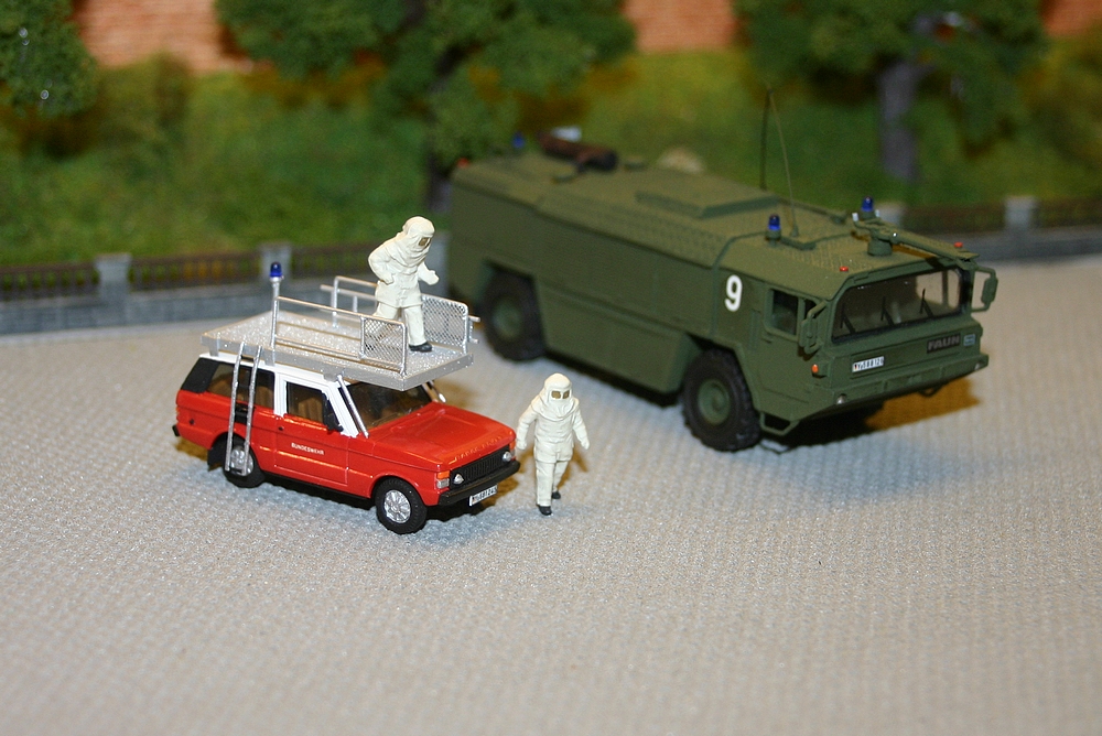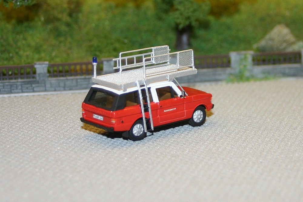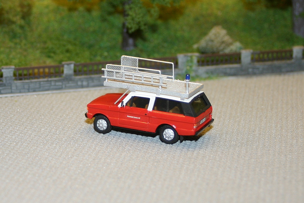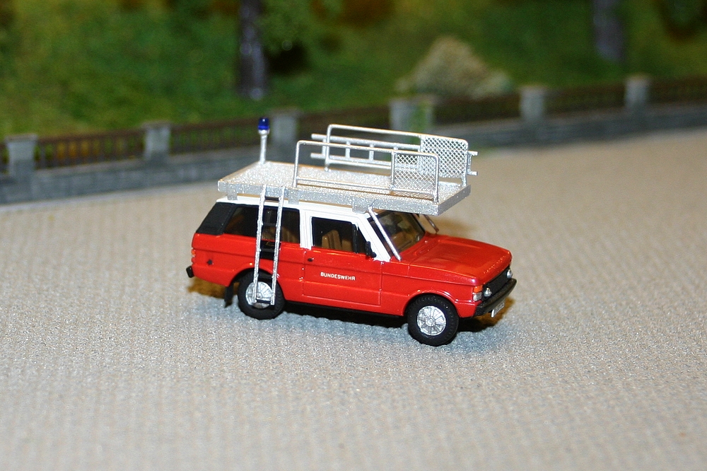 Auf den wenigen Fotos die ich vom Rover zur Verfügung hatte, war die Bühne "ohne Beladung" zu sehen. Allerdings hatte das Fahrzeug im Kofferraum Feuerlöscher und/oder eine Löschanlage? verlastet.Jürgen Mischur hat geschrieben:Ohne daß ich jetzt danach gesucht habe, aber hatte der Range Rover nicht noch tragb. Feuerlöscher und anderes "Geraffel" auf der Bühne? Oder verwechsele ich da jetzt was?