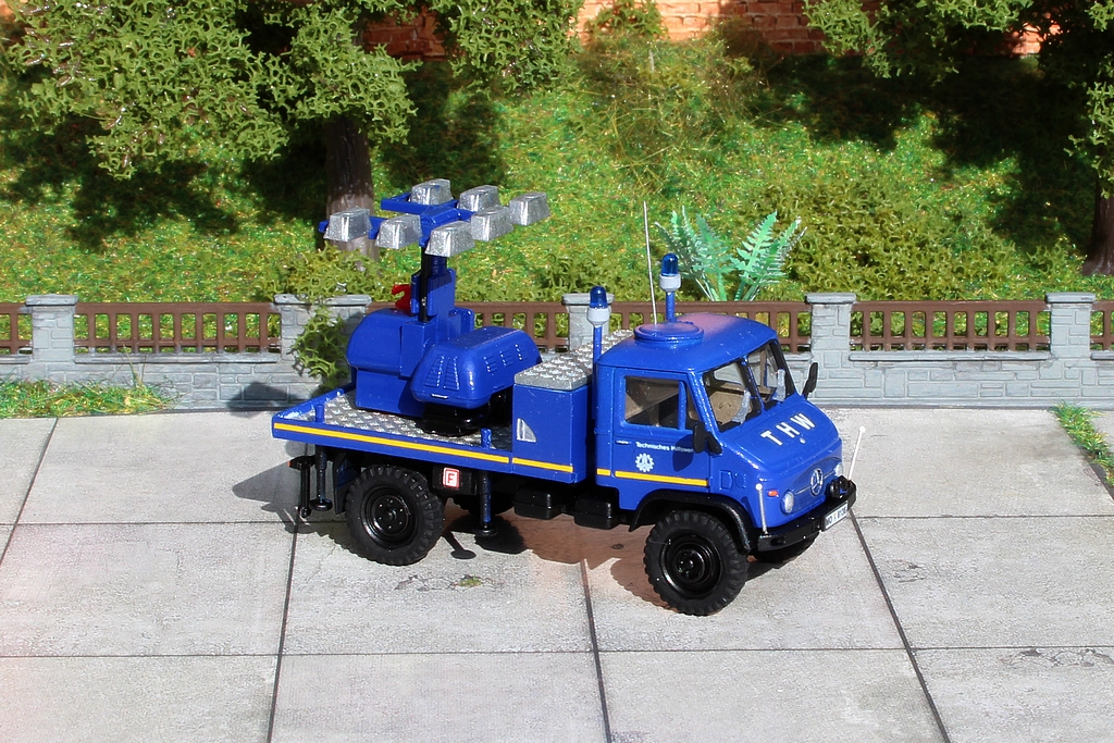 Auslöser zum Bau dieses Modells war der 2020 von Uli Vornhof vorgestellte GW-Licht auf Unimog S 404 aus Frankenburg. Ich habe mein Modell dann allerdings als THW Fahrzeug gebaut und einem fiktiven THW Ortverband zugewiesen. Die Geschichte zu diesem Fahrzeug könnte sich vielleicht so zugetragen haben: