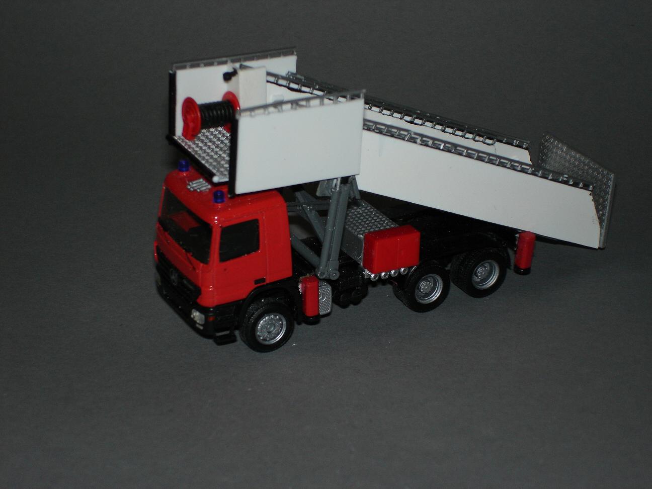 Die Seitenverkleidungen sind aus Evergreen-Platten,das Geländer aus halbierten Herpa-Leitern vom HLF.