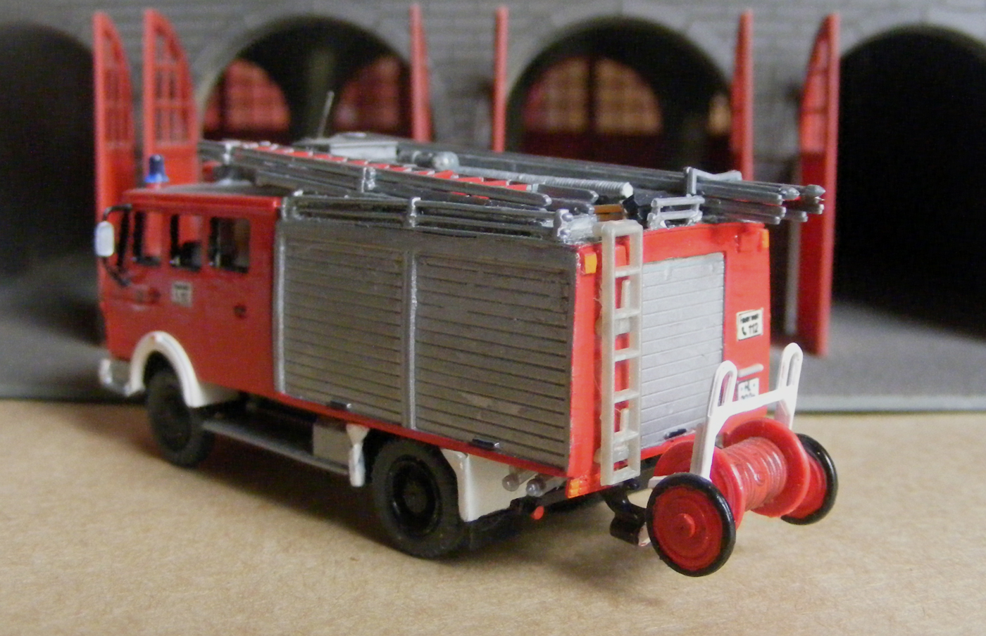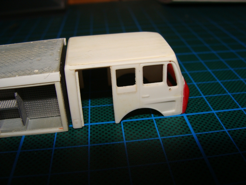 Das Modell wird eine Kombination aus Wiking/Preiser. Auf diese Idee hat mich Andreas Kowald gebracht. Die Preiserkabine wurde hinter der Fahrertür ausgesägt und mit Seitenteilen vom Wiking LF 16 zusammengefügt. Die Spalte wurden mit Bondic gefüllt.