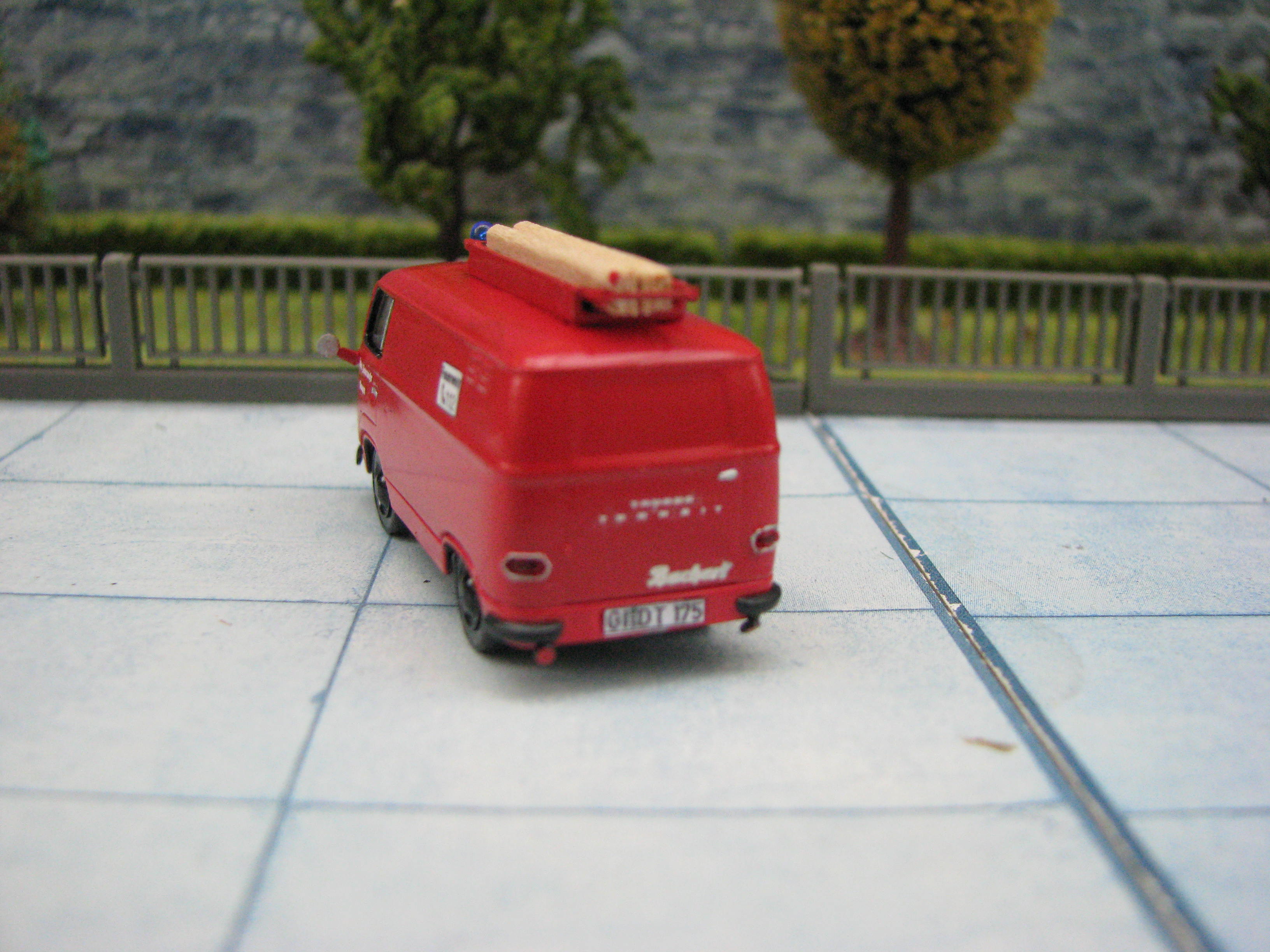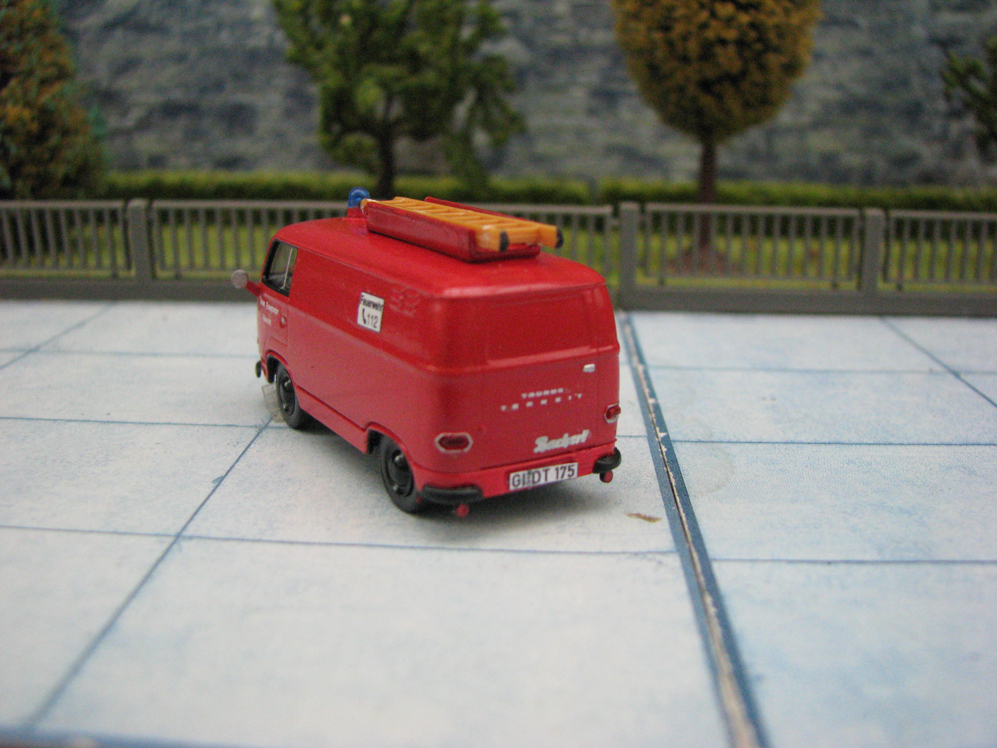 Das Modell ist von Brekina und wurde durch einen Mittelsteg an den beiden Mittelfenstern ergänzt. Sonst wurden nur ein Parr Detais mit Farbe hervorgehoben. Das Modell ist noch nicht ganz fertig es fehlt noch die Türbeschriftung.