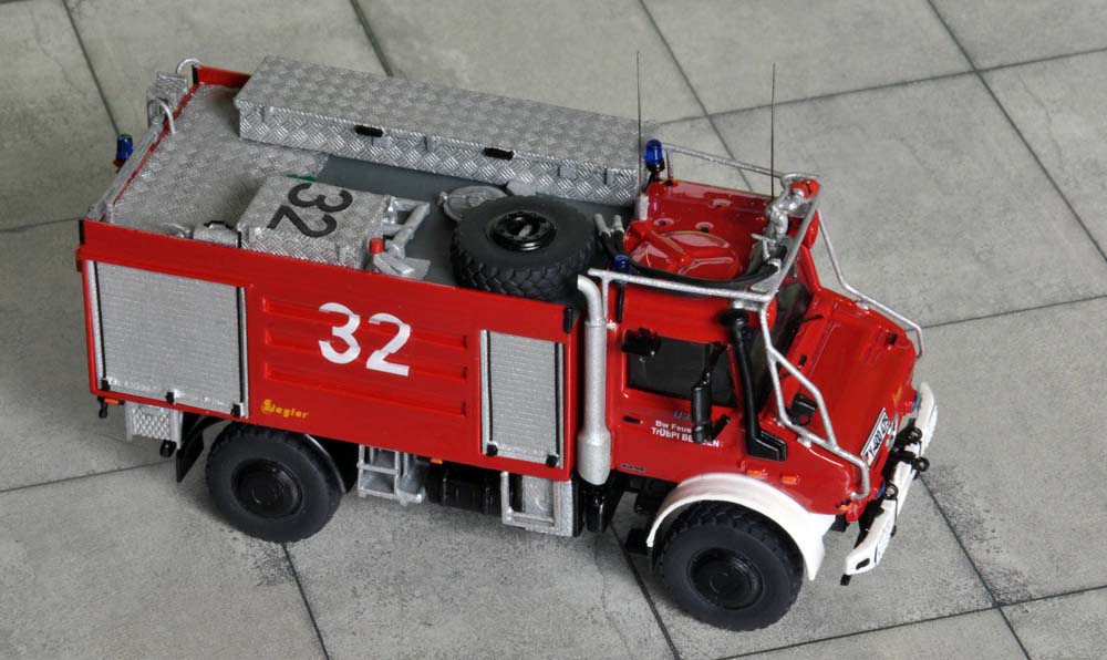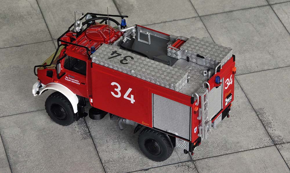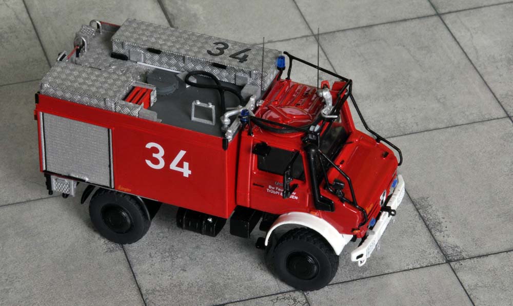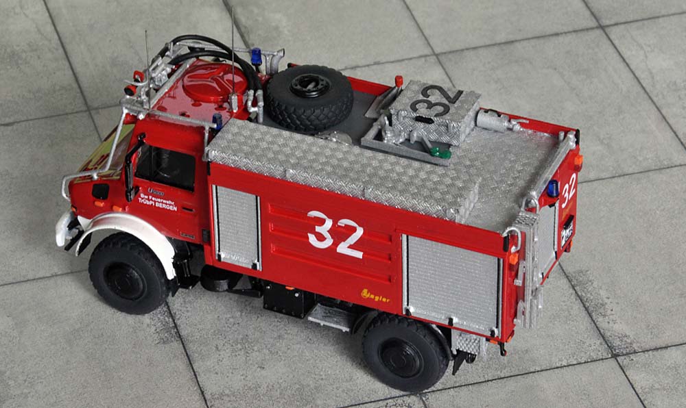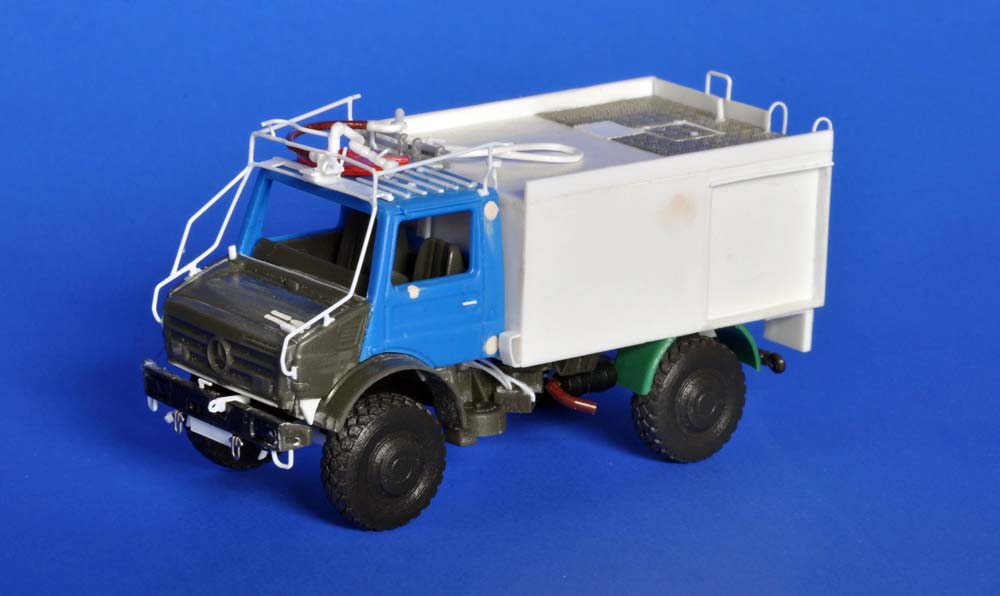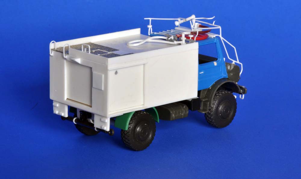 Beim Prototypen musste ein kürzeres Kibri Unimog-Fahrgestell herhalten, von dem auch die flache Kabine stammte. Sehr schön fand ich die Profilierung der Y-Modelle Räder, nur das lackieren ist schwieriger da sie leider aus einem Teil bestehen.