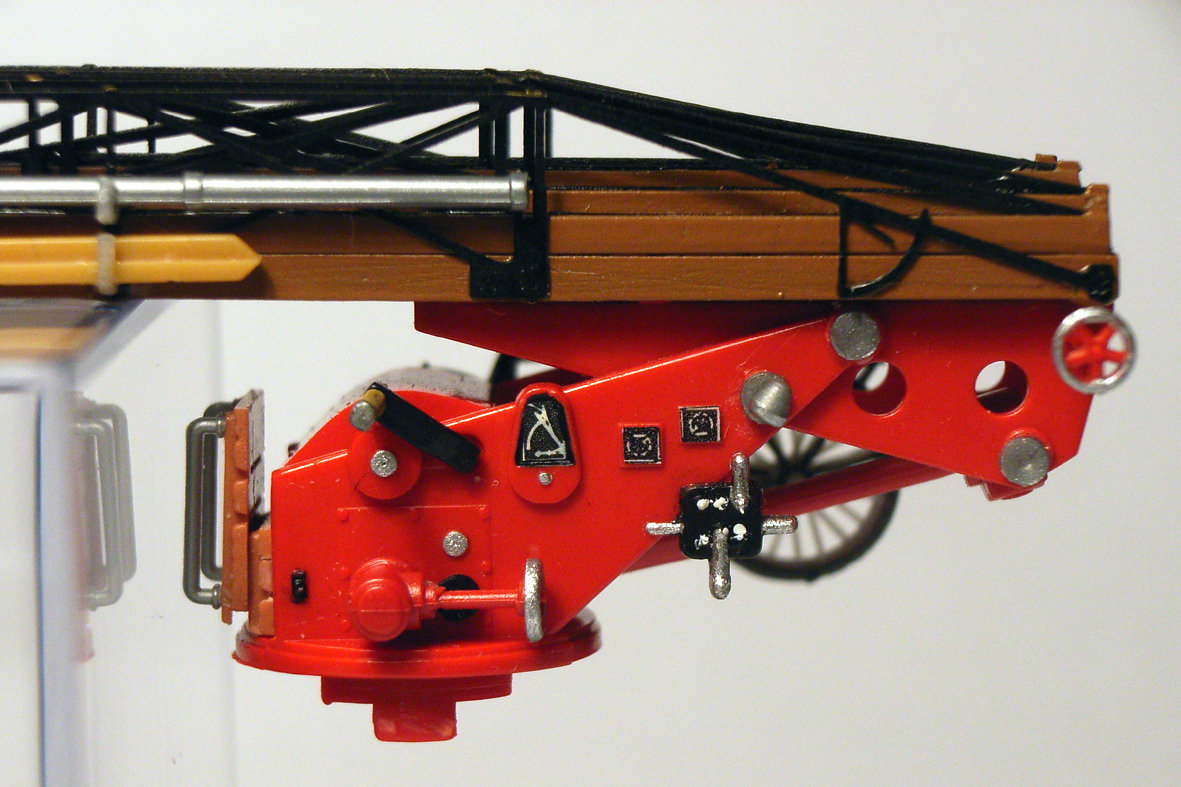 Das alles ist bis jetzt wirklich nur ein Rohbau, den ich aber baldmöglichst vollenden möchte! Und bevor sich jemand über die Kosten aufregt: Die Idee zu dieser Nachkriegs-DL kam mir nach einer nicht ganz beabsichtigten "Bewegungsfahrt" der wunderschönen, schrecklich teuren Marks-Drehleiter! Anschließend war das Fahrgestell Schrott - Gott sei Dank konnte ich das Leiterpaket vor diesem Schicksal bewahren! Also fast wia im richt'gen Leb'm...!!! Über den Baufortschritt werde ich berichten, sobald es weitergeht!