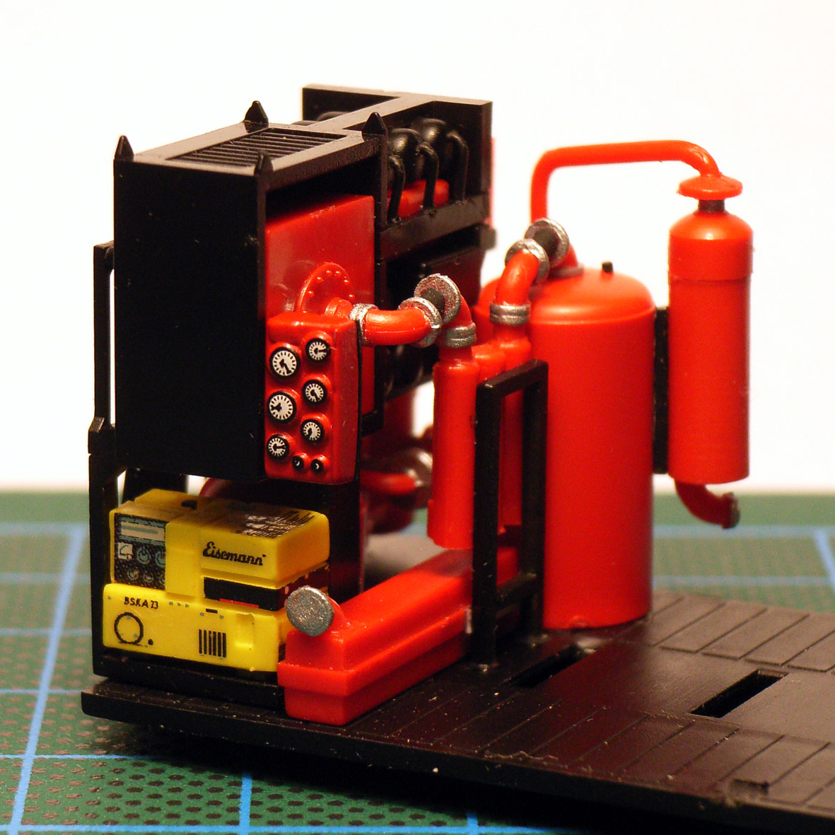 Schade, das wäre jetzt genau meine Frage gewesen. Das "Gewirr" aus Leitungen und Kesseln sieht hervorragend aus. Aber ein Scania als Exot bei der Feuerwehr Nordstadt wäre doch auch mal ganz schön gewesen