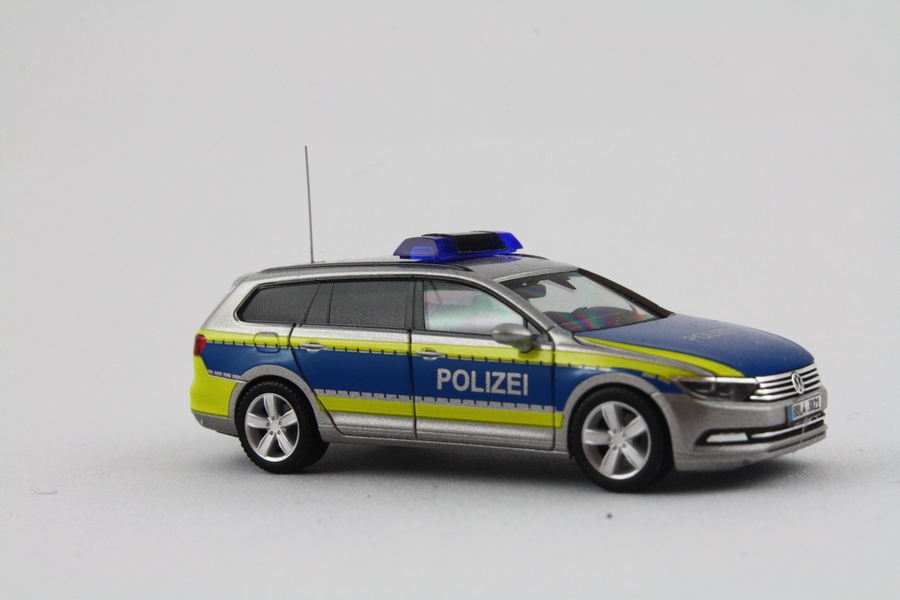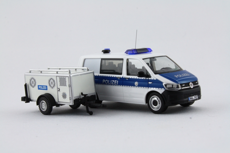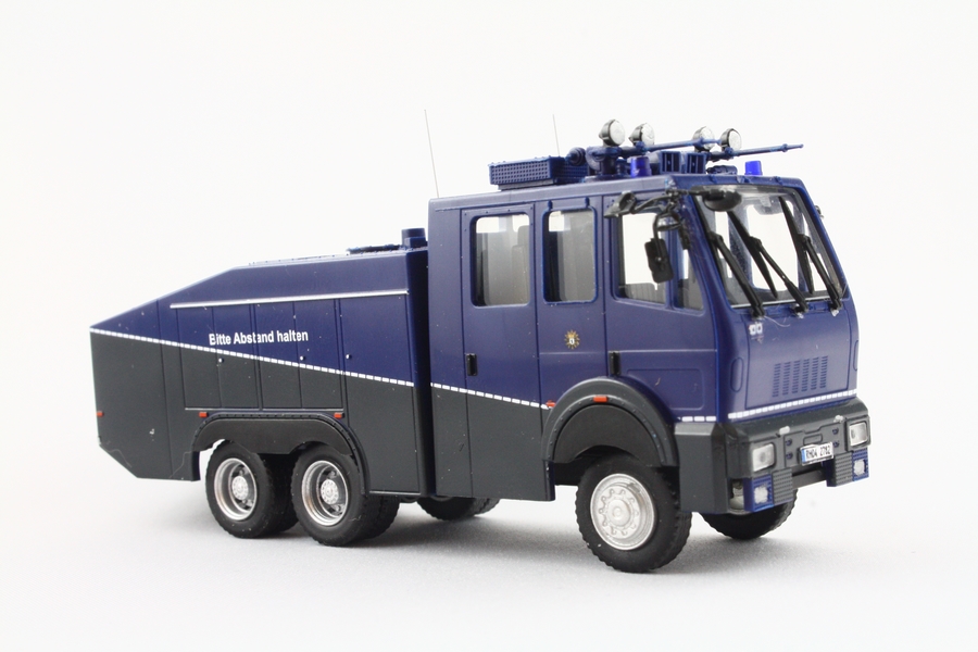 Die Modelle wurden in blau lackiert, anschließend abgeklebt und die untere Hälfte in anthrazit lackiert. Die Trennstelle wurde mit weißen Gaps noch mehr betont. Ich folge damit dem Gestaltungskonzept von http://www.polizeiautos.de für Sonder- und Großfahrzeuge der Polizei in Deutschland. Dieses findet mittlerweile (in teils abgewandelter Form) bei der Bundespolizei und bei einigen Länderpolizeien Verwendung.