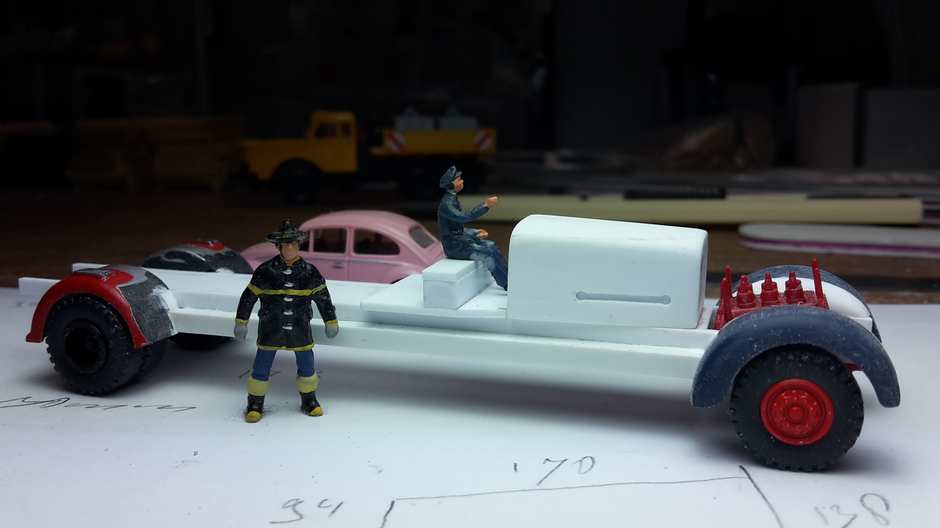Das Modell ist noch nicht vertig. Ich muss den Schlauche noch bauen und einige klein Teile wie den Scheinwerfer. Das wird eine Zeit brauchen weil ich den Zubehör noch kaufen muss.