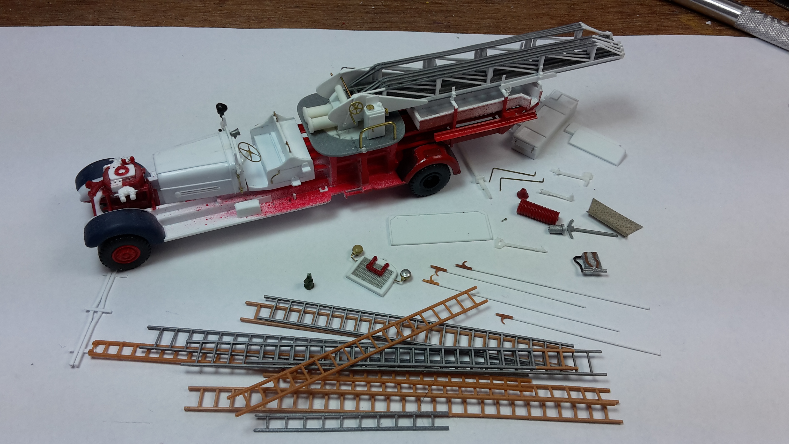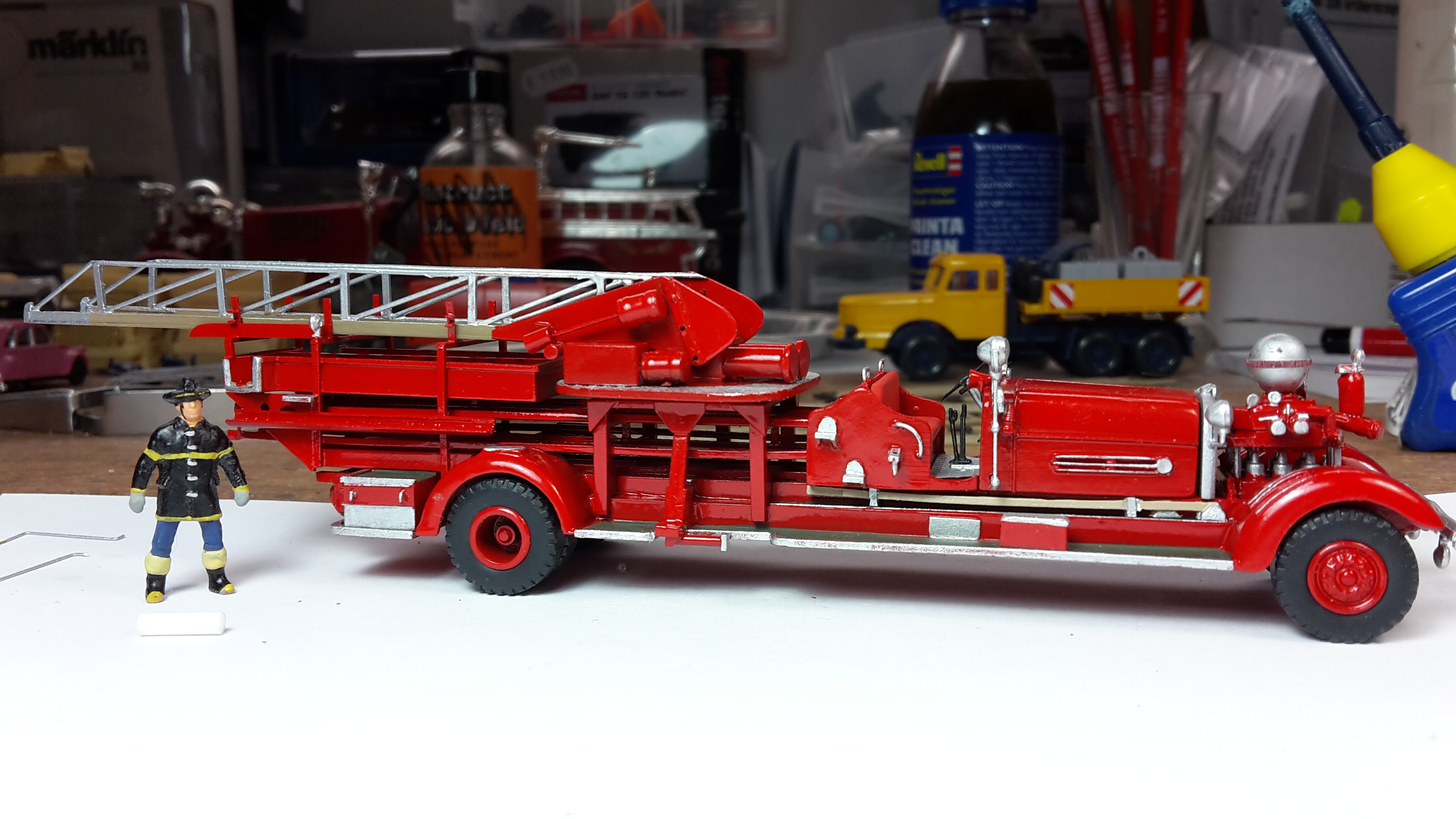 Aber ich bin jetzt den grosste Ahrens Fox immer am bauen. Das Fahrzeug ist das einzige Quint Ahrens Fox hat gebaut. Es wirde im 1939 durch den Fire Department von Fairview im Einsatz genommen.