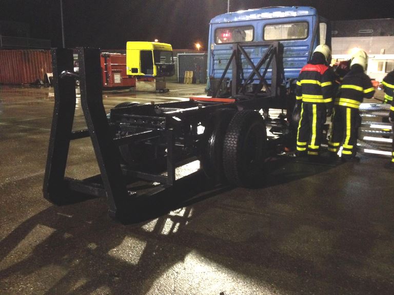 Es handelt sich um WA´s die zur Darstellung und Durchführung von Übungen zum Thema "Unfälle mit Lkw´s" eingesetzt werden. Der eine Aufbau verbleibt dabei auf dem Wechselladefahrzeug, wohingegen der andere (mit den seitlichen Reifen) auch abgesetzt werden kann. Bei letzterem ist die Fahrerkabine mittels eines Staplers auch leicht austauschbar.