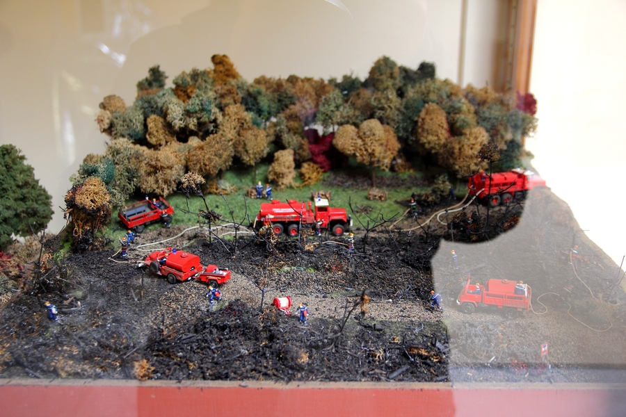 Im Verbindungsgang zwischen den Hallen fanden weitere kleine Ausrüstungsgegenstände Platz, dazu kleine Dioramen (entsprechen nicht ganz dem uns hier beschiedenen Niveau :mrgreen: aber ich habe schon schlimmeres gesehen :wink: ) sowie das Telegrafenzimmer der Mülhausener (Mulhouse) Feuerwehr. Die Fahrzeuge stehen hier allerdings etwas enger, was das Fotografieren erschwert.