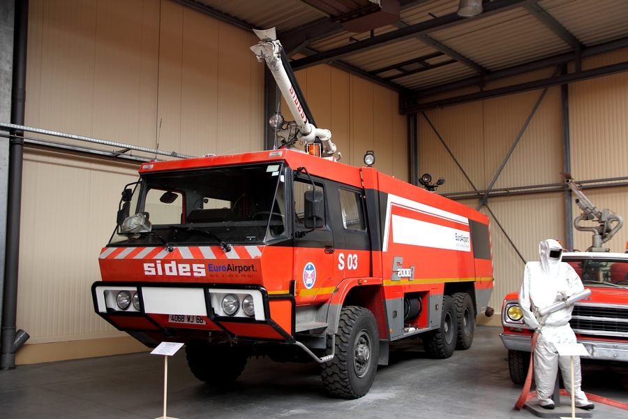 In der großen Halle dann die großen "Neufahrzeuge". Darunter ein Sides-FLF des Aerporte Basel, ein "französiertes" GLG und eine Green Goddes, die es in die Schweiz verschlagen hatte. Dann noch ein GW-Licht/Strom auf Laffly, ein CV4 mit TSA, zwei Premiers Secours (KLF) auf Hotchkiss und Laffy, diverse Drehleitern.