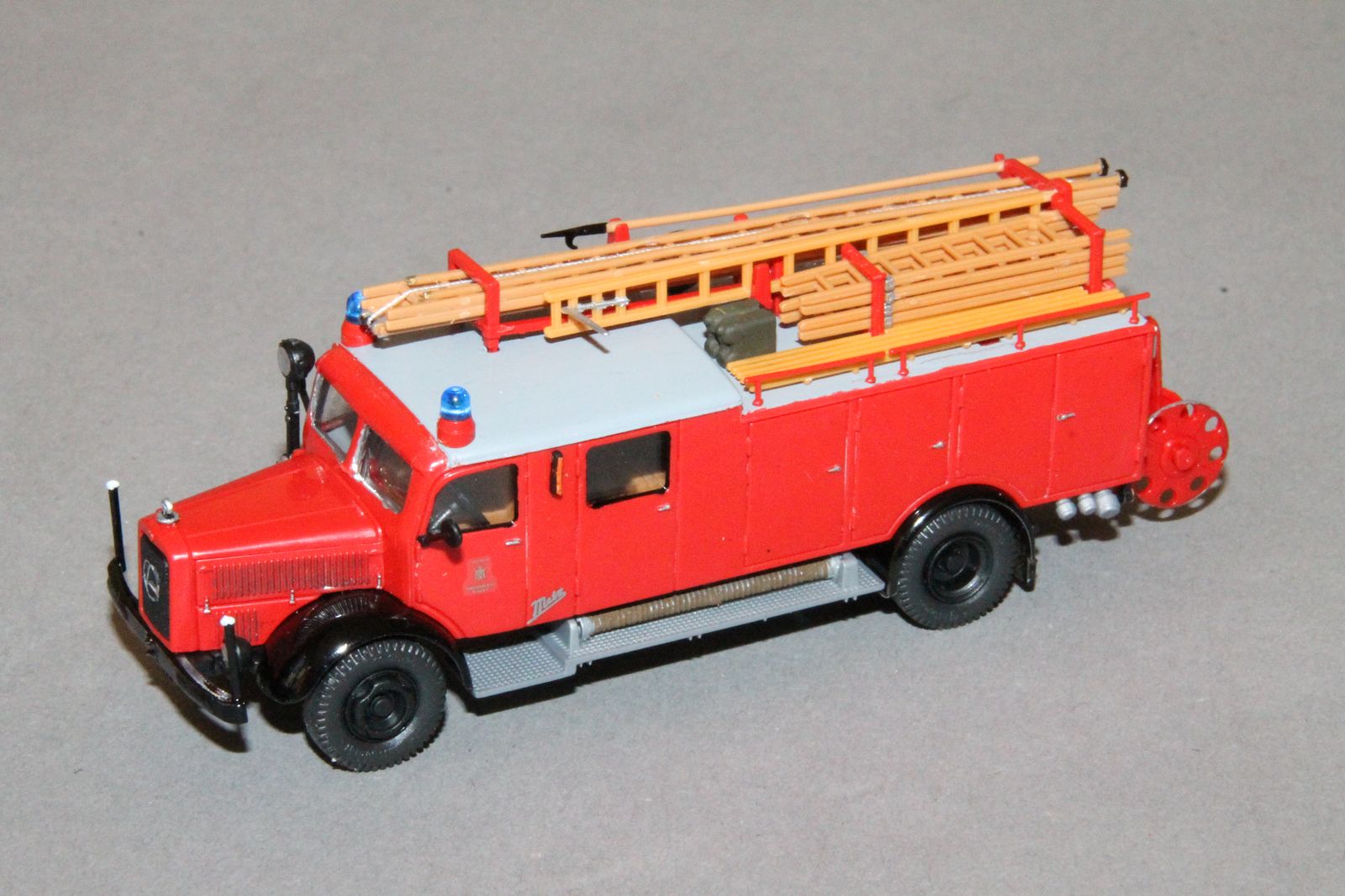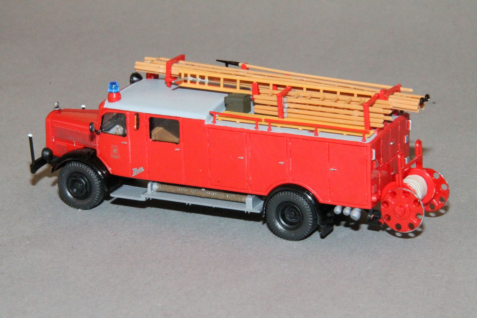 Das schwarze runde auf dem Aufbau ist natürlich kein Ersatzreifen für ein Fahrrad!! :wink: Dass ist eine sogenannte "Menschenangel", welche in den Nachkriegsjahren, als es noch keinen klassischen Wasserrettungszug gab, auf allen Münchner Löschgruppenfahrzeugen mitgeführt wurden.