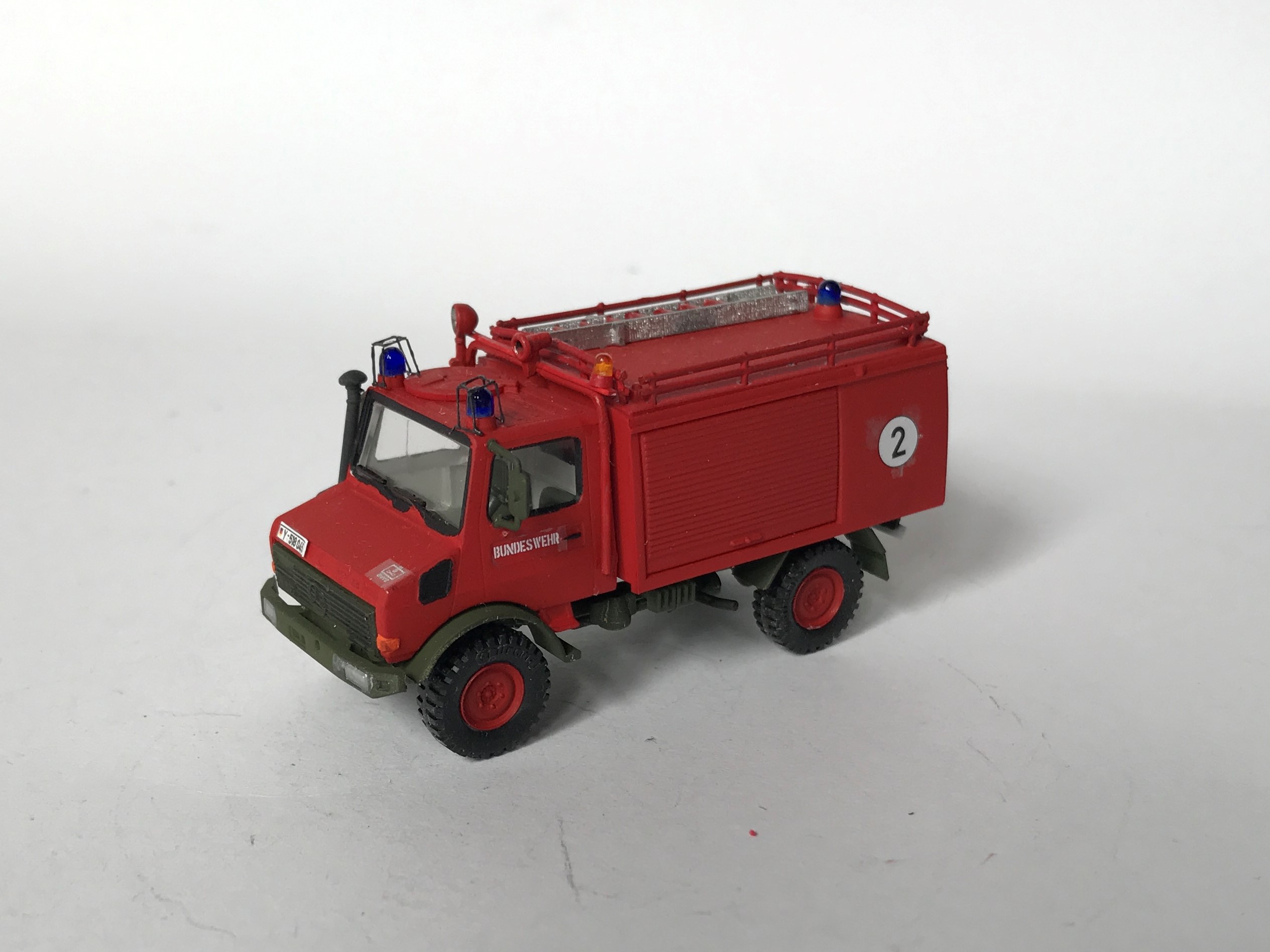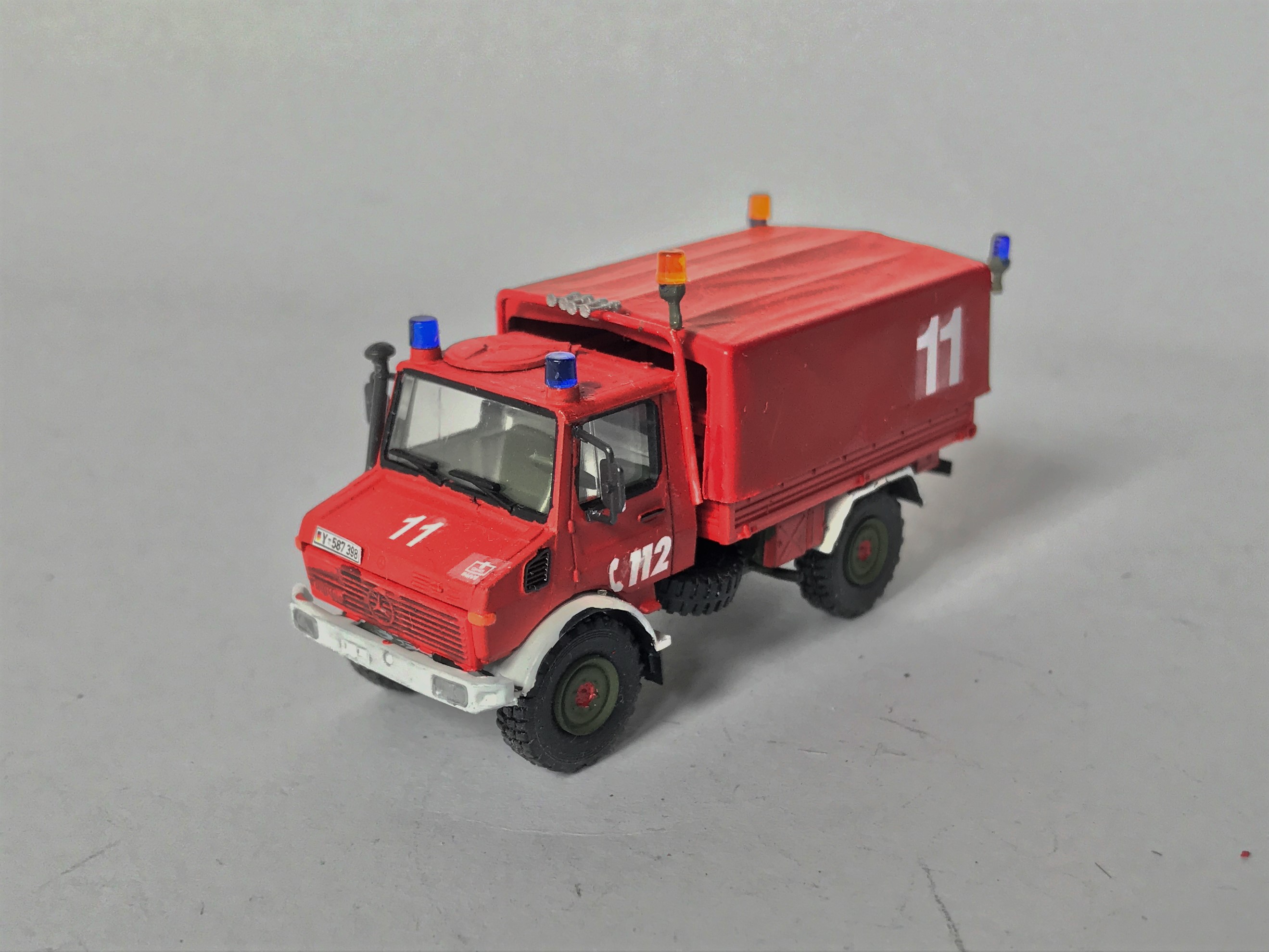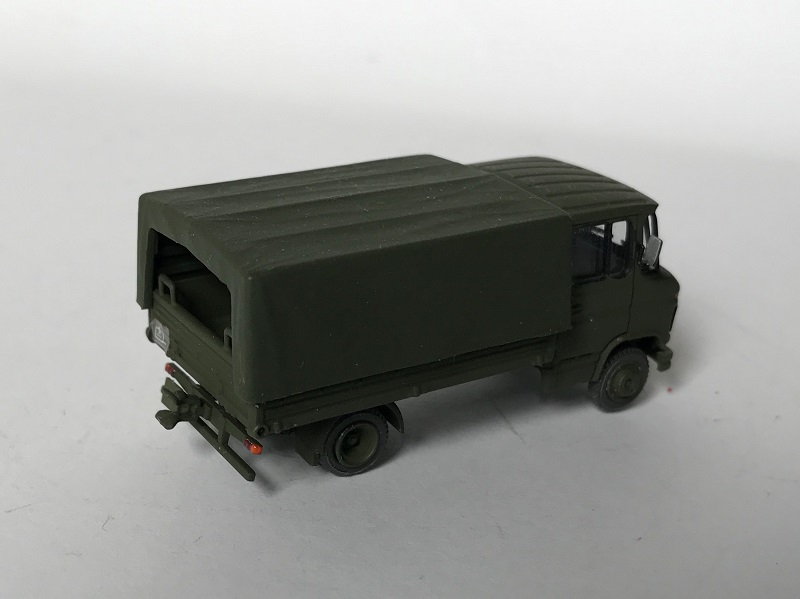 Wie das Vorbild auch wurde das Modell aus einem entsprechend gekürzten Preiser-Modell und einer Pritsche vom 2t-Unimog (Roco) gebaut.