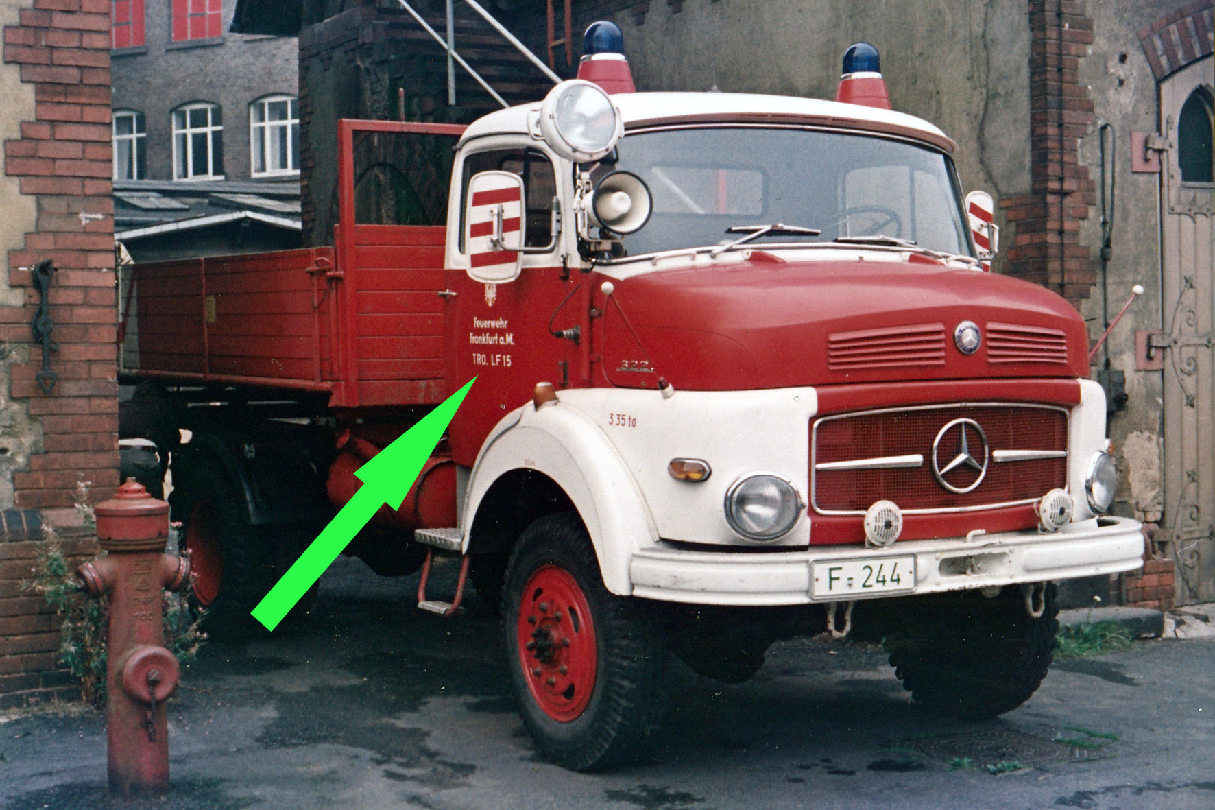 Was das seltsam anmutende Gestänge an der Leiterablage angeht: Bitte keine Fragen stellen was das sein soll! Ich vermute eine selbstgebaute Krankentragenhalterung um verunglückte Mitarbeiter einfacher vom Hochofen oder ähnlichem runter zu bekommen. So etwas gab es ja damals jedenfalls noch nicht von den großen Herstellern.