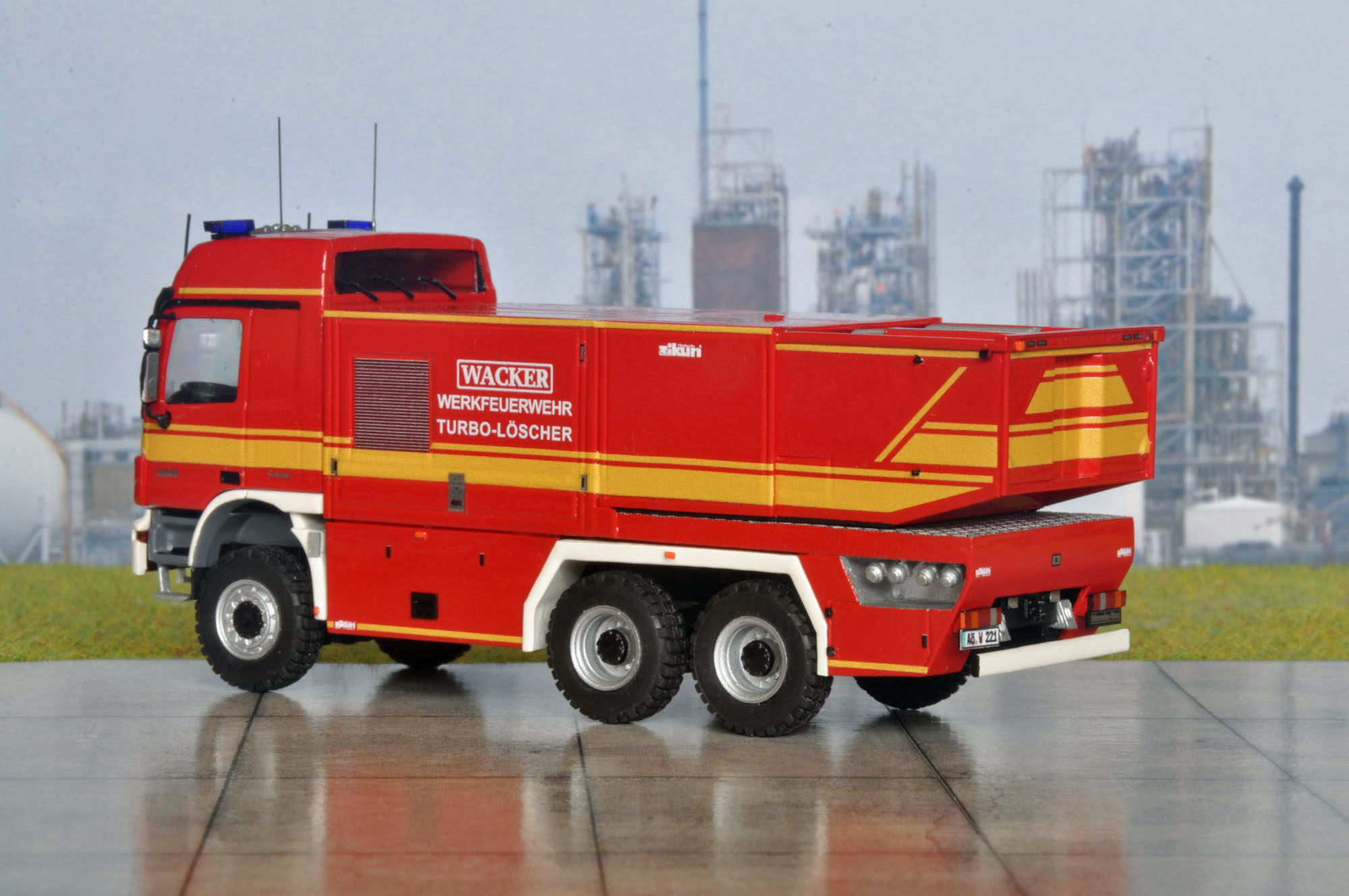 Auch Wacker in Burghausen bekam 2007 einen Turbolöscher. Der dritte Turbolöscher entspricht bis aus wenige Details dem Fahrzeug der WF Bayer. Wer entdeckt die Unterschiede? (Mal abgesehen von Blaulichtern und akustischer Signaltechnik)