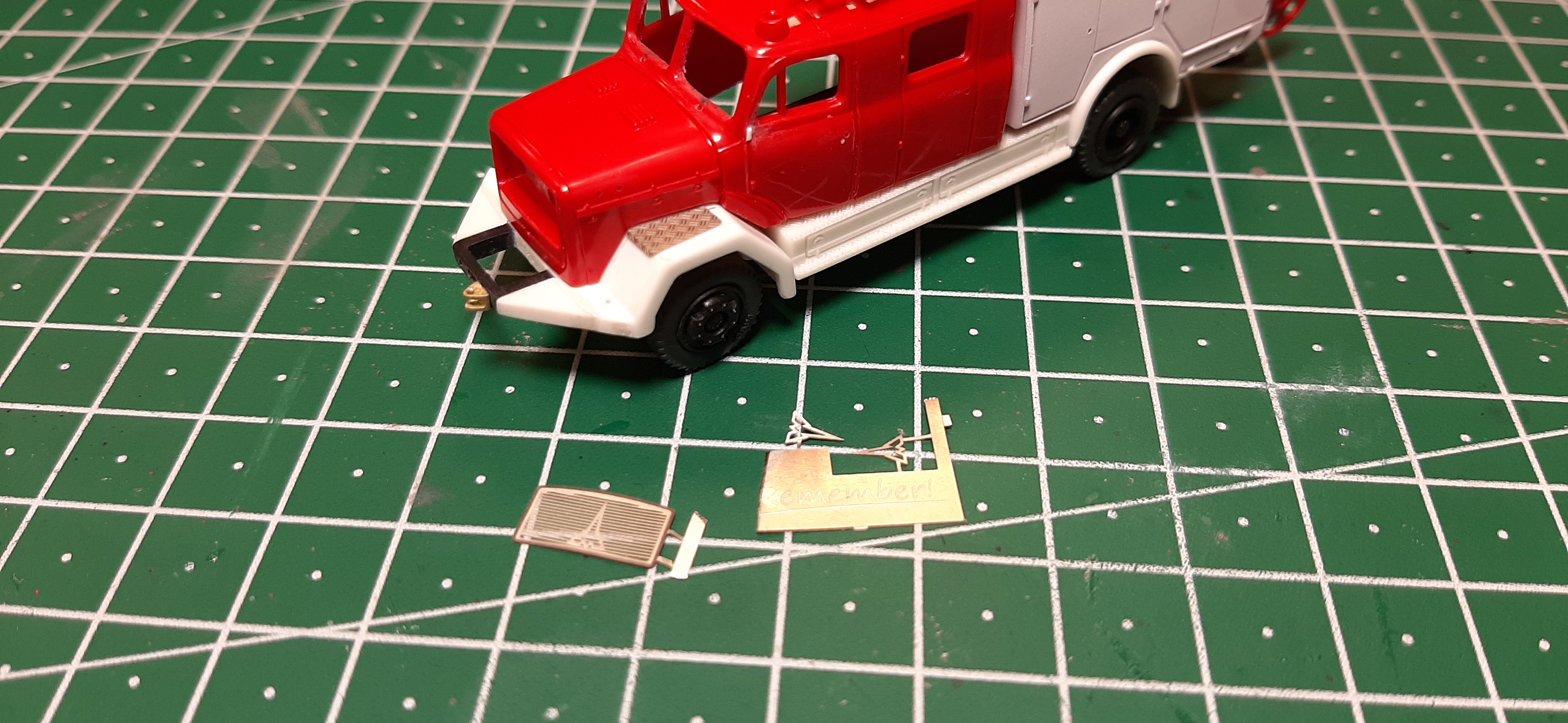 Die Gravuren hab ich doch tatsächlich in guter, altehrwürdiger Handarbeit mit Messer und Co erledigt. :) Ob ich noch weitere Fahrzeuge baue, weiß ich noch nicht. Du hast recht, da gab es einiges aber eigentlich hatte es mir das gezeigte LF angetan, weil es ein für die Zeit doch sehr schönes Design mit dem für Hannover typischen Streifen und der Beschriftung hatte.