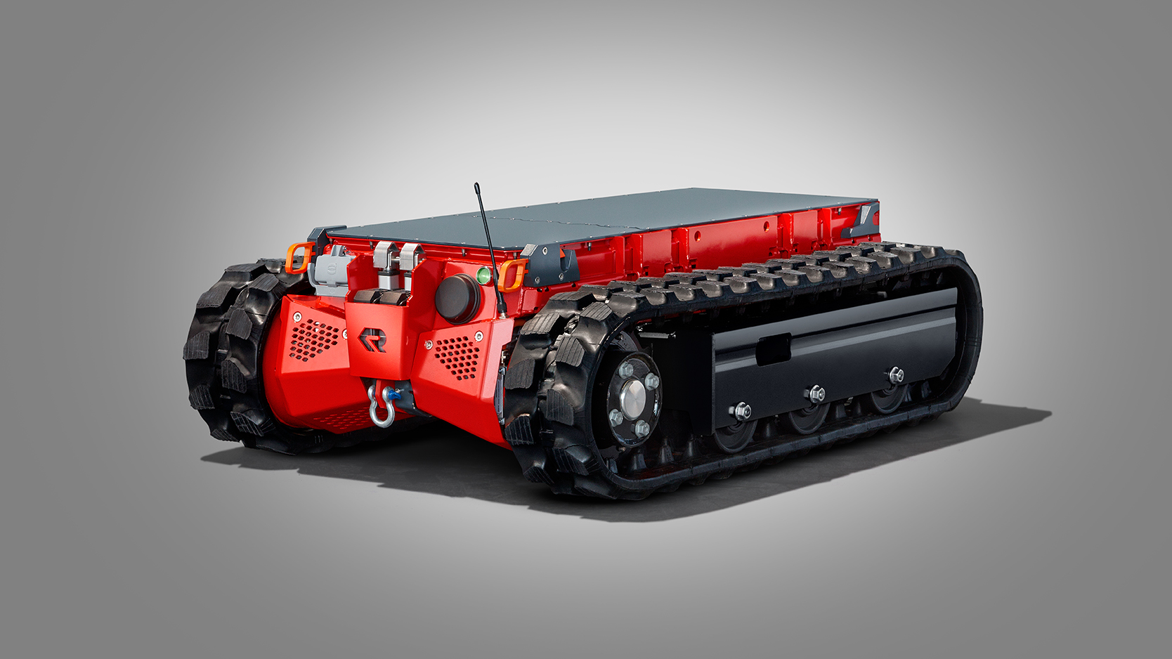 Ein modulares System verleiht dem RTE ROBOT seine enorme Variabilität. Es besteht aus drei, perfekt aufeinander abgestimmten Bausteinen: dem vollelektrisch angetriebenen Grundfahrzeug, einem Baukasten aus wechselbaren Aufbaumodulen und einer robusten Funkfernbedienung. Auf dem Kettenfahrzeug gibt es eine standardisierte Plattform (Schnellkupplungssystem), die als Schnittstelle jede Art von Nutzlast aufnimmt, deren Grundfläche im Normmaß einer Europalette (1.200 x 800 mm) bleibt. Über die Fernbedienung werden nicht nur die Fahrbefehle erteilt, sondern lassen sich alle Geräte steuern, die man aufbauen bzw. befördern kann. Die Bedienphilosophie ist dieselbe wie bei den Funkfernsteuerungen in Rosenbauer Fahrzeugen.