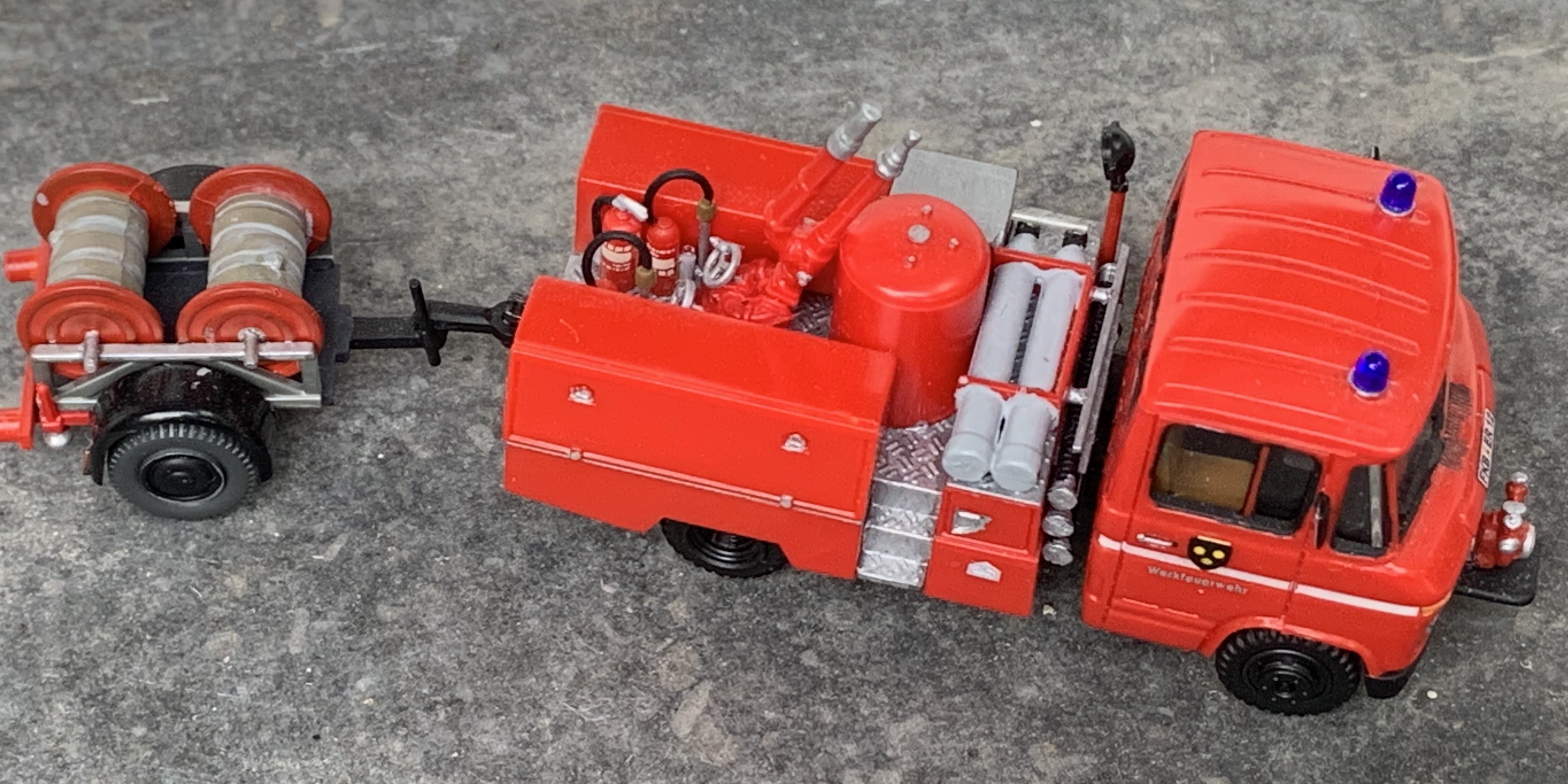 Die WF GSE passte das Fahrzeug als S-LF 16 an den Bedarf der WF an. So wurde u.a. ein großer Dachkasten statt der Schiebleiter aufgesetzt, und ein „mobiler“ Werfer auf dem Dach montiert. Statt der Schlauchhaspel wurde der alte Schlauchanhänger mit 2 Haspeln mitgeführt.