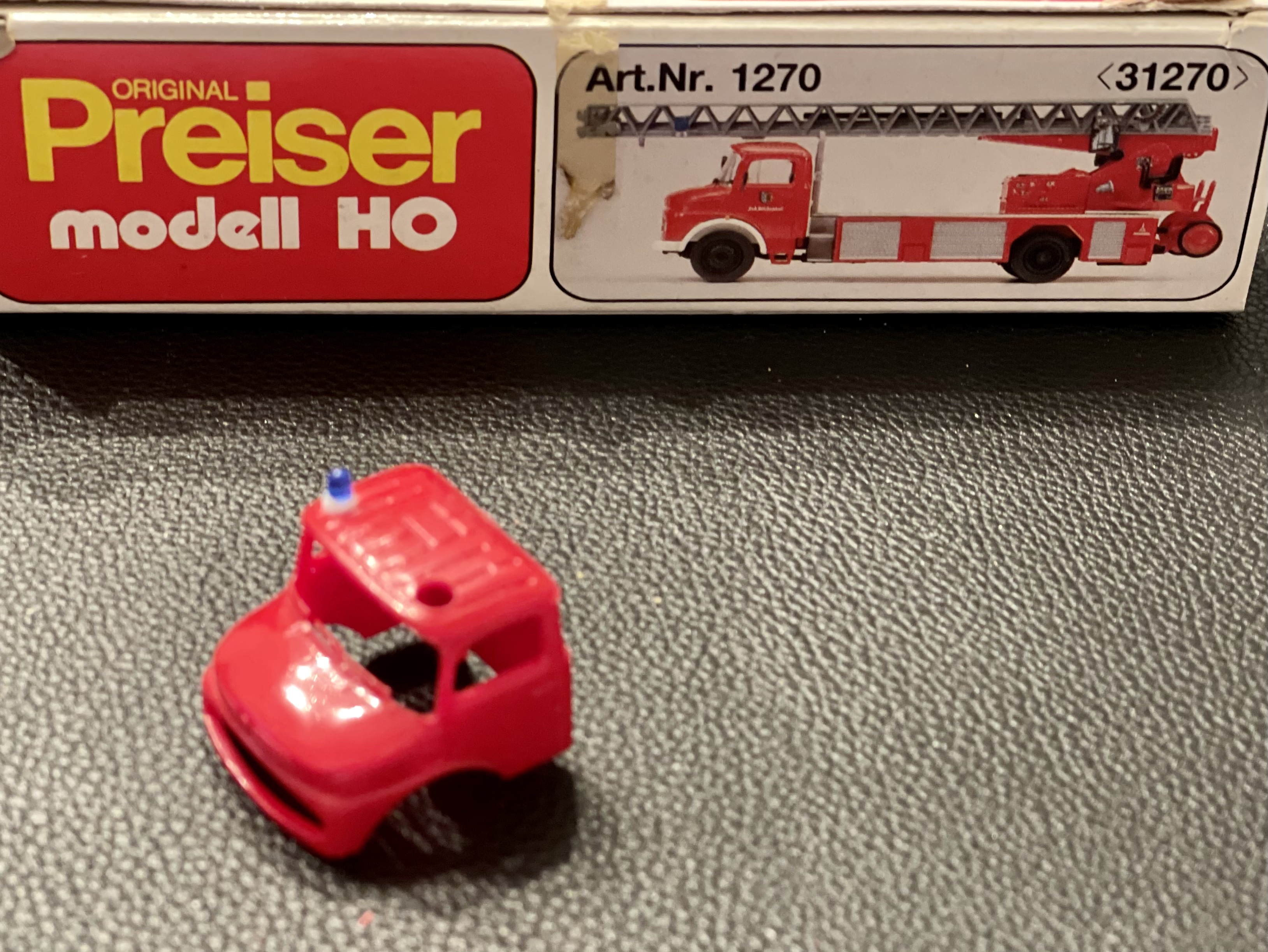 Leider ist von der wunderschönen Leiter nicht viel erkennbar... Es ist m.E. eine DLK 23/12 auf Mercedes 1313 mit Truppkabine (ovaler Grill) sowie Metz-Aufbau mit Drehtüren und Schrägabstützung. Sie reizt mich natürlich nun sehr zum Nachbau unter Verwendung von Brekina-Teilen sowie Kabine und Chassis von Preiser #1270.