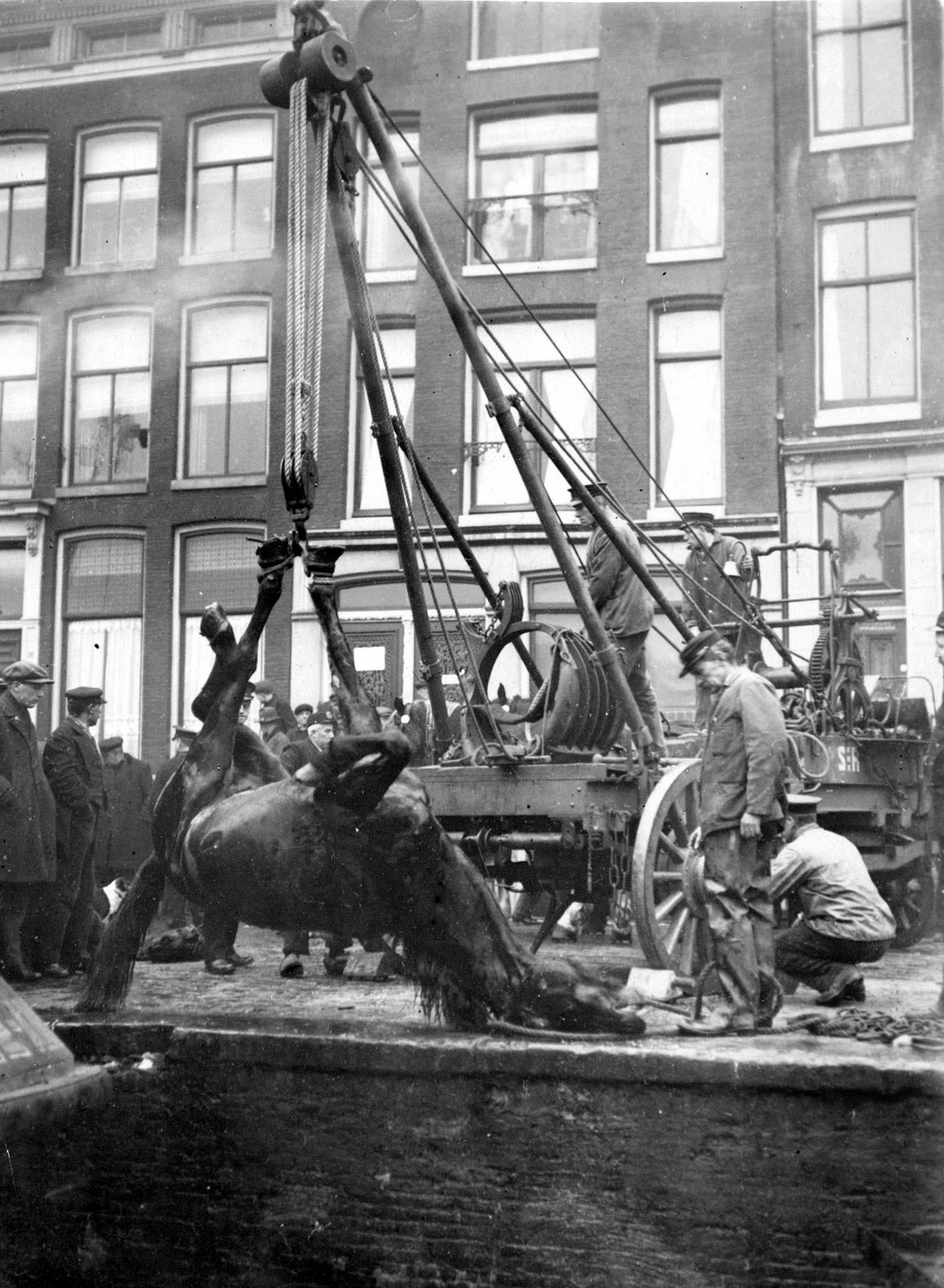 Und wenn ich irgendwann mal zuviel Zeit habe, dann bau' ich für meine Tierretter noch einen Kran. Denn in Amsterdam gab es eine "Paardenhijsmachine", entwickelt vom Sohn des Pferdemetzgers Gerrit Sinck (1837-1923).