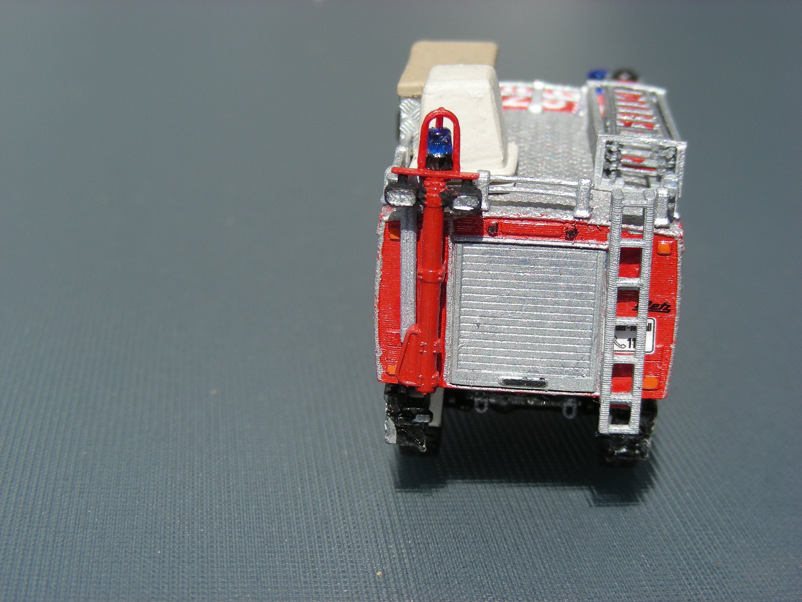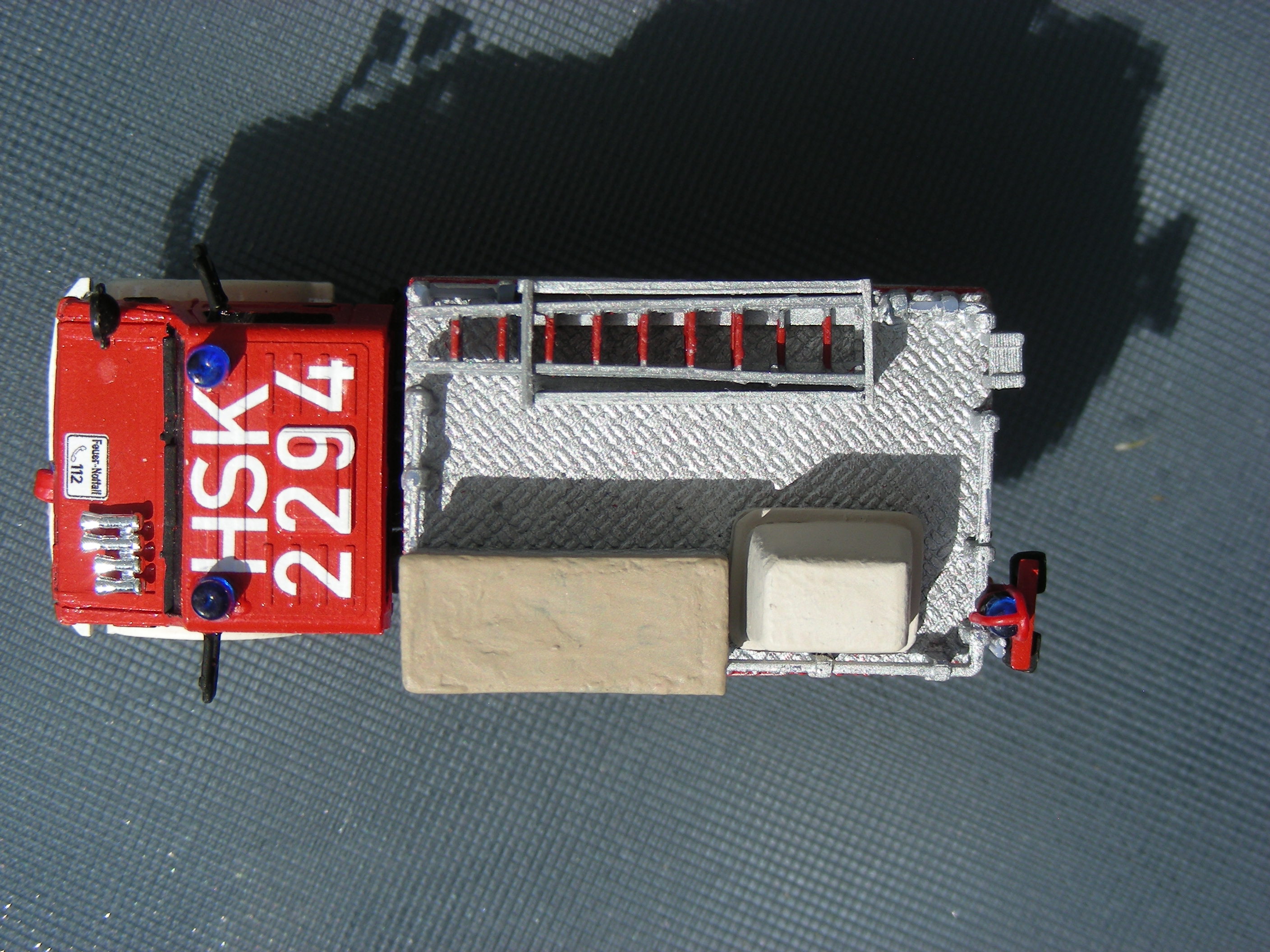 Die Aufangwannen entstanden ebenfalls frei Schnauze nach den Bildern. Wenn ich die Bilder in meinem Archiv richtig deute fehlt neben der 4 teiligen Steckleiter noch eine Schleifkorbtrage.