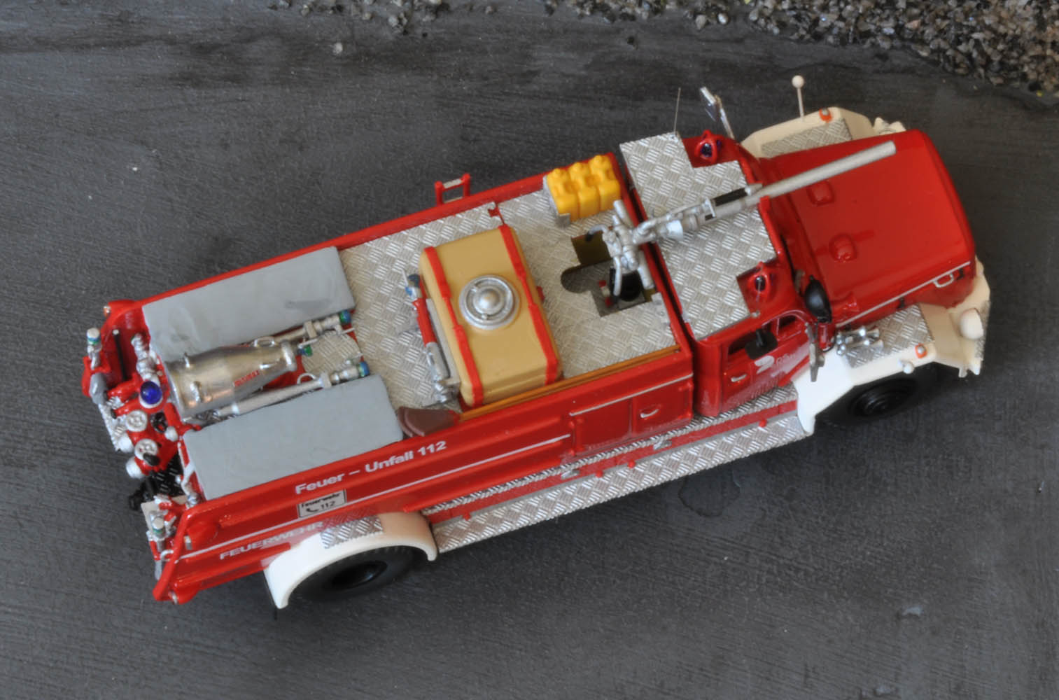 Weißt du was das für ein Strahlrohr hinter dem Schaummitteltank ist? Die silber-rote Farbgebung macht mich doch etwas unsicher das es sich um ein normales Schaumrohr handelt. Wenn es etwas spezielles ist, hättest du auch ein Bild davon?