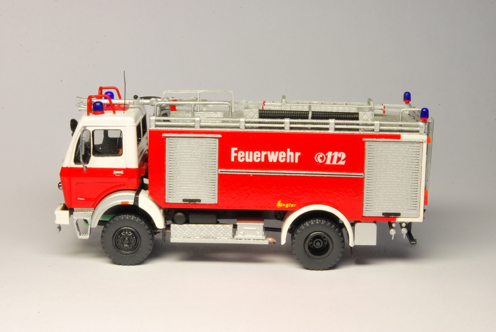 das ist ein sehr schönes Modell, welches bei mir Kindheitserinnerungen weckt. Die Feuerwehr in meiner alten Heimatstadt hatte genau so ein Fahrzeug, wenn auch natürlich in einer anderen Farbgebung (klassisch einfarbig in RAL 3000). Und weil die Feuerwehr direkt auf dem Weg von meiner Grundschule zu unserer Wohnung lag, habe ich es öfter mal ehrfürchtig bestaunen können.