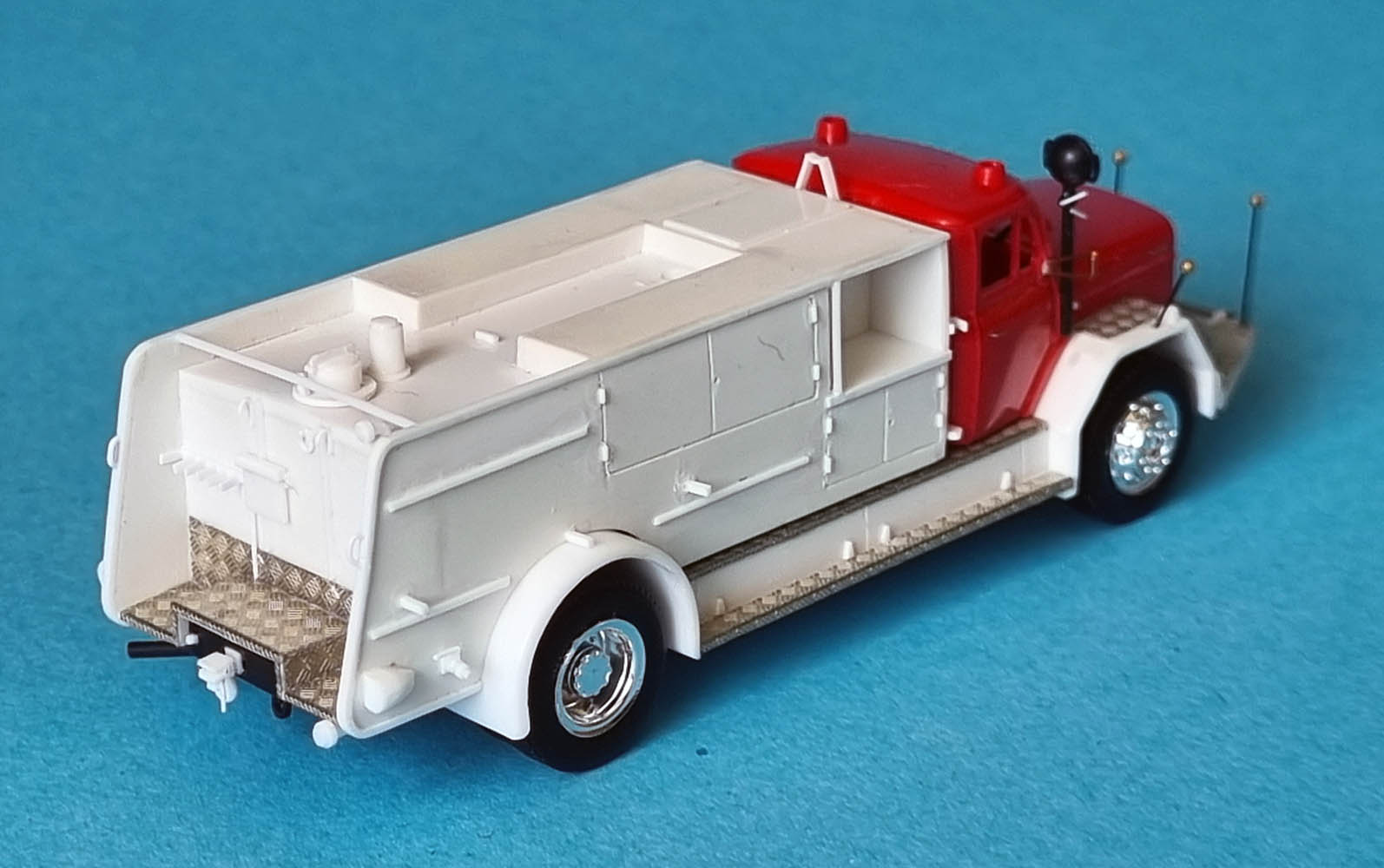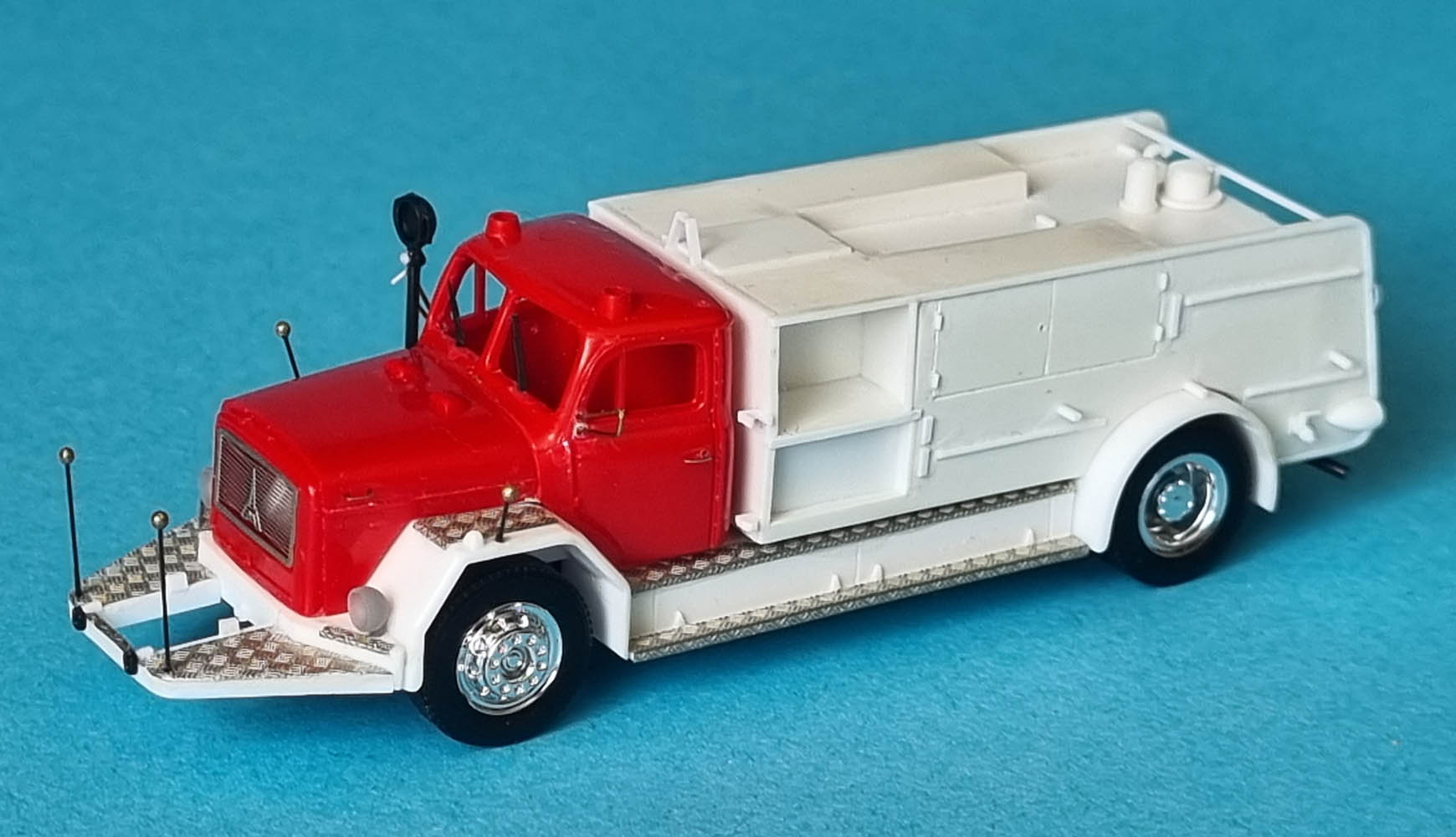 Die relativ kurzlebige Raffinerie bekam 1967 zwei ZLF von Magirus. Diese Fahrzeuge waren damals relativ populär und wurden in für WF relativ großen Stückzahlen gefertigt. Das hier gezeigte Fahrzeug kam später zur WF Elf/Total in Brunsbüttel und wurde danach von einem Sammler restauriert. Da es mit dem langen Werferrohr und den schwarzen Kotflügeln ziemlich ursprünglich aussieht habe ich mich für diese Version entschieden. Übrigens haben alle Raffinerien diese Fahrzeuge in Pärchen gekauft.