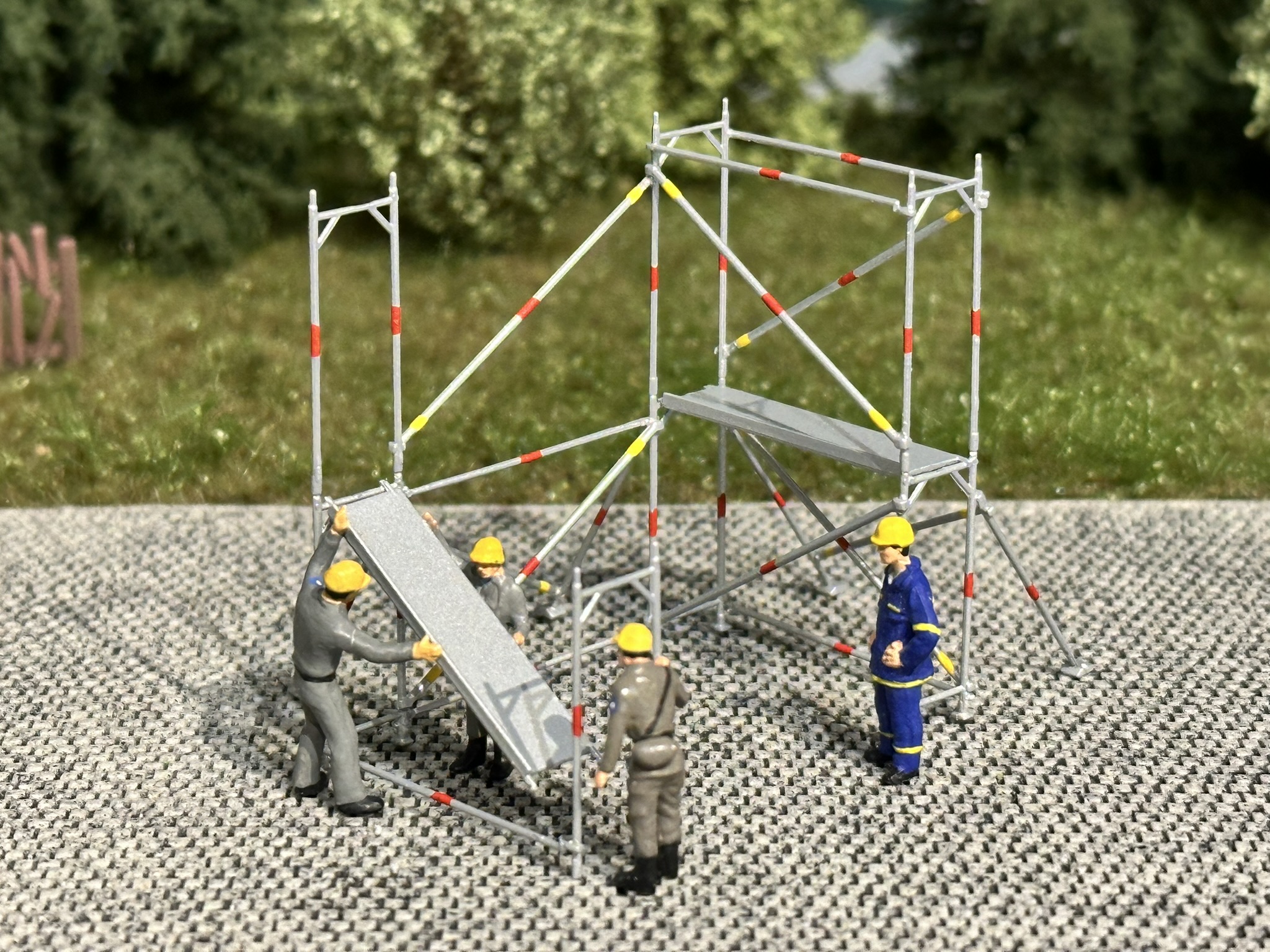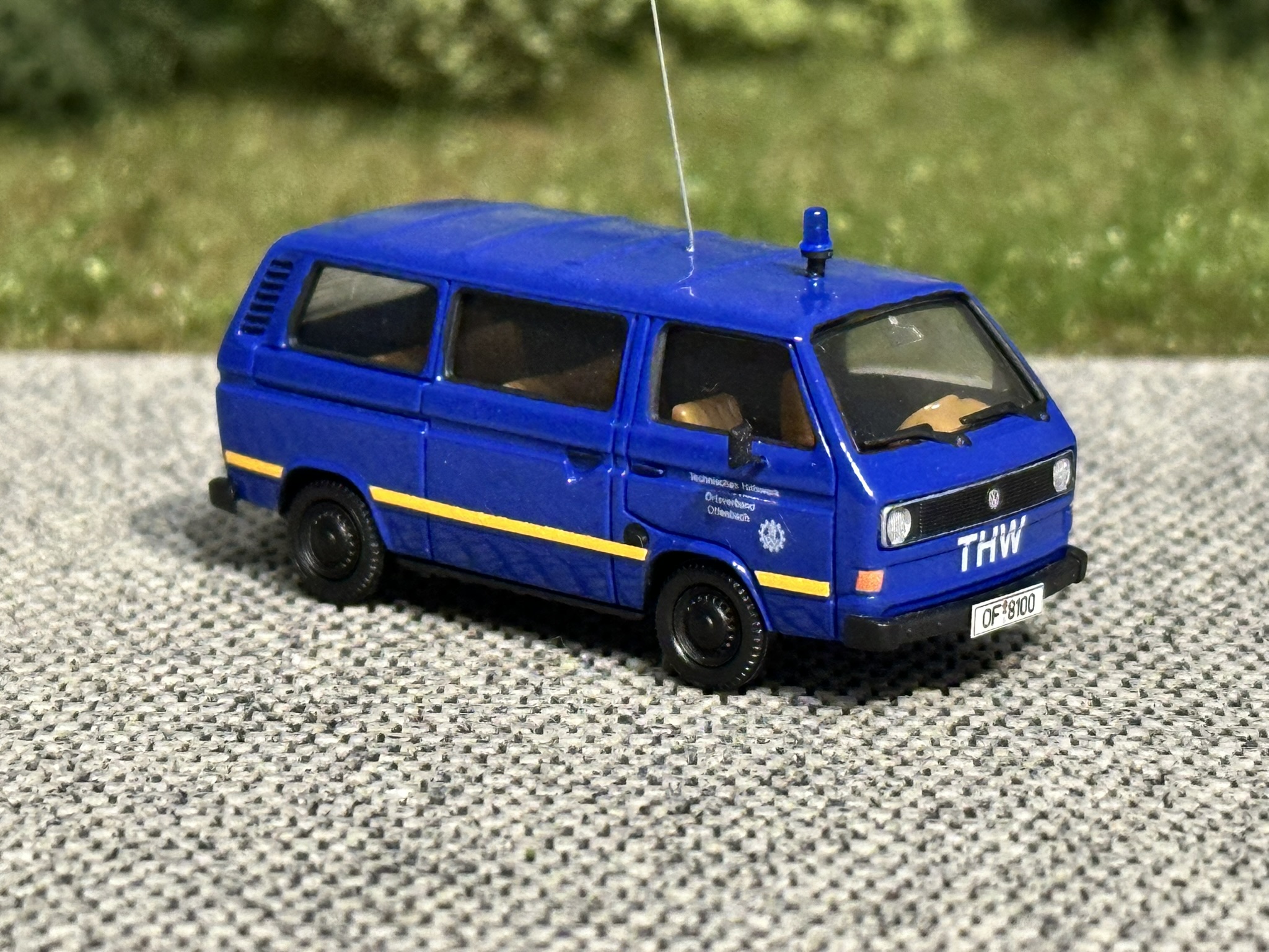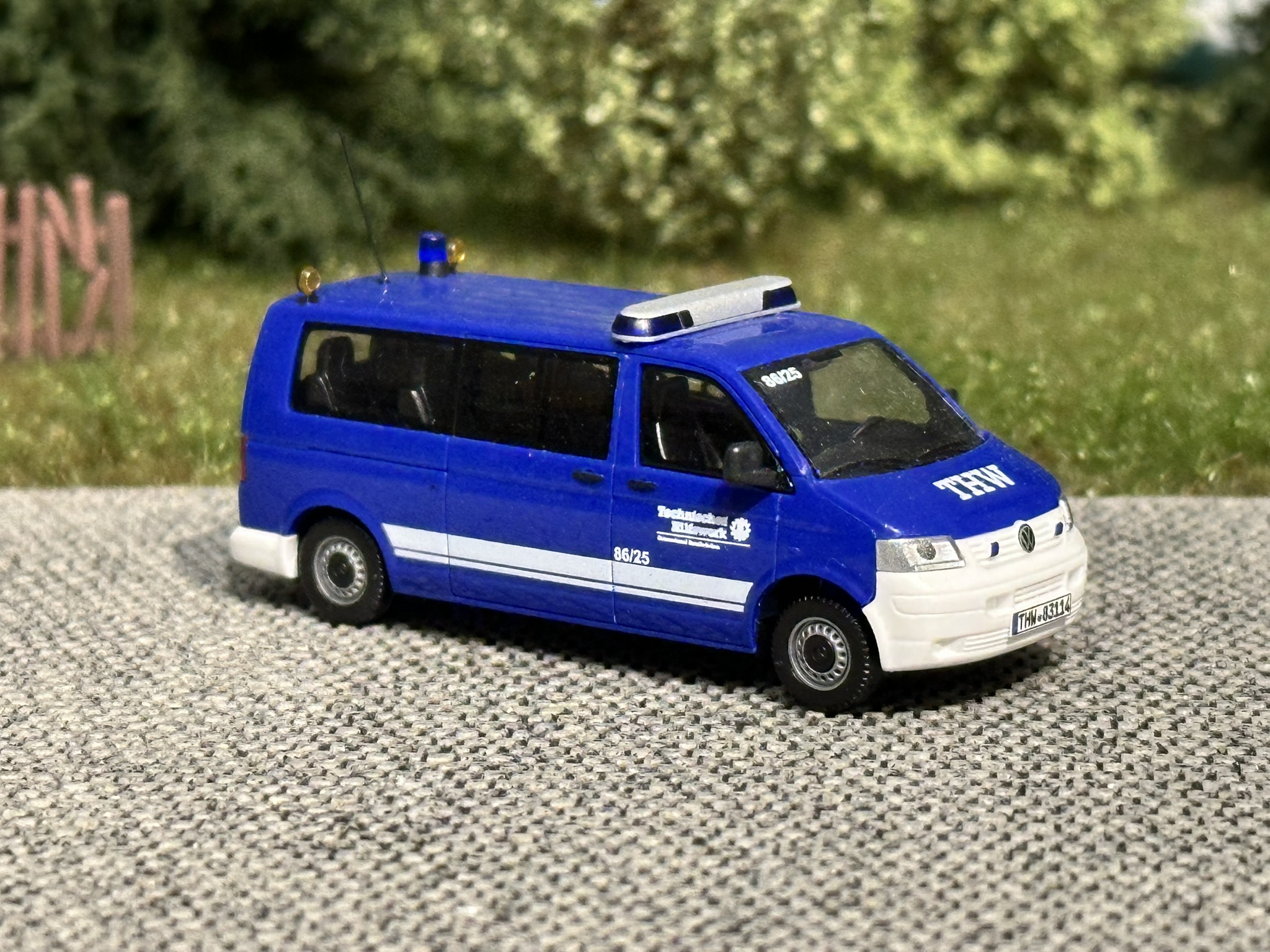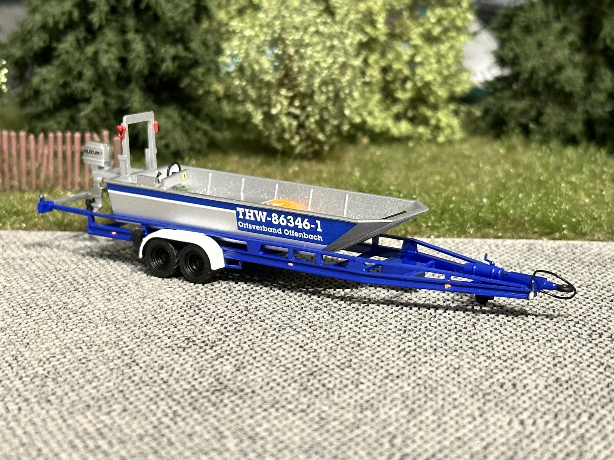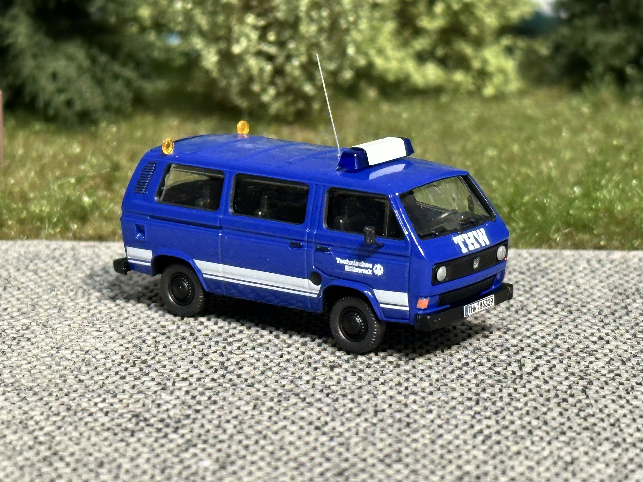 Zum Modell: Es handelt sich hier, wie erwartet um die Preiser Modelle. Die Blaulichtsockel auf dem Kabinendach wurden verschliffen, eine neue Stange für die Blaulichter an der Kabinenrückwand angebracht. Am Heck wurde der Unterfahrschutz entfernt, die Scheinwerferhalterung nach oben versetzt, Halter für die Reflektoren und das Kennzeichen angebracht und eine Anhängerkupplung von MMH verbaut.