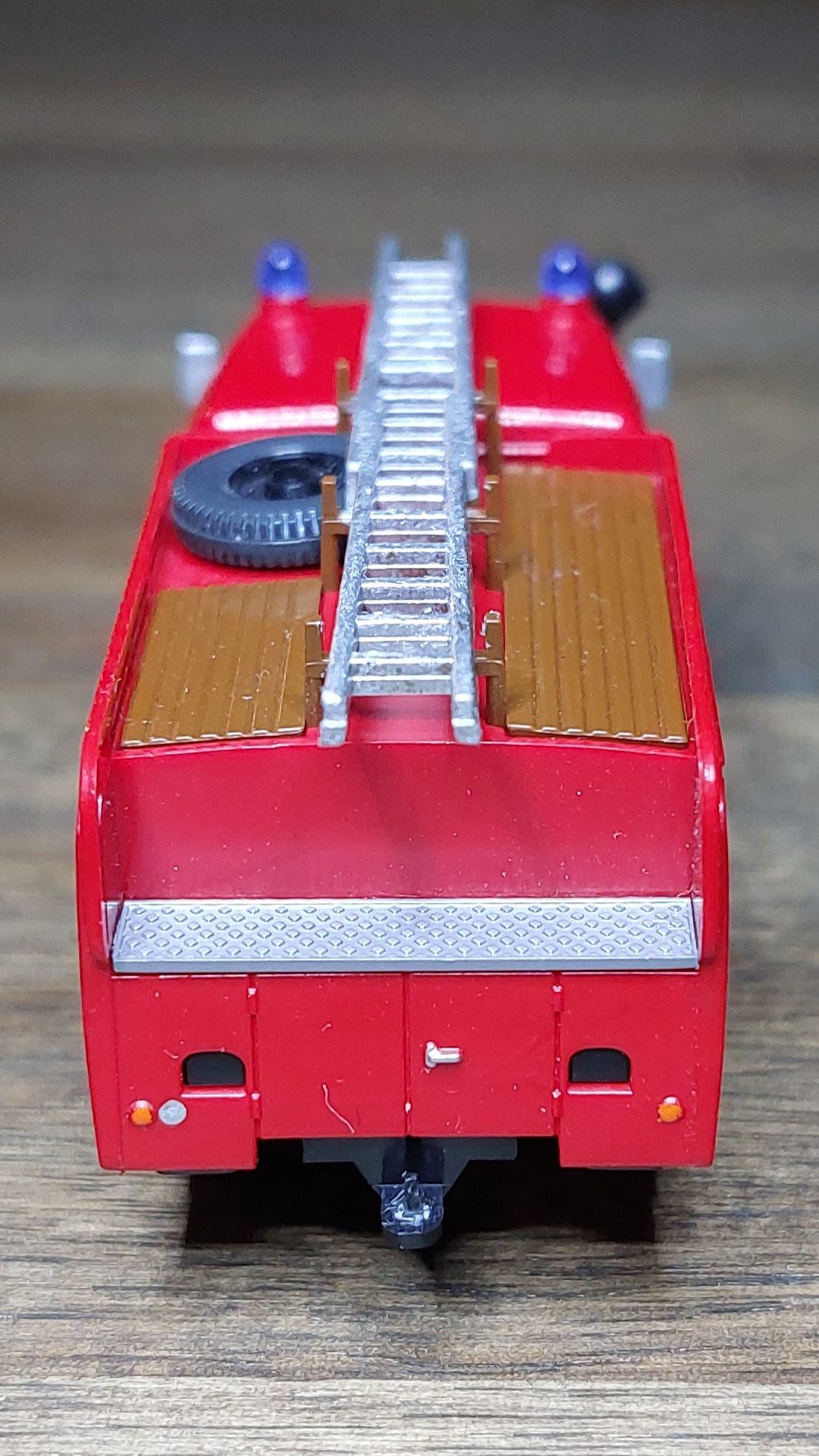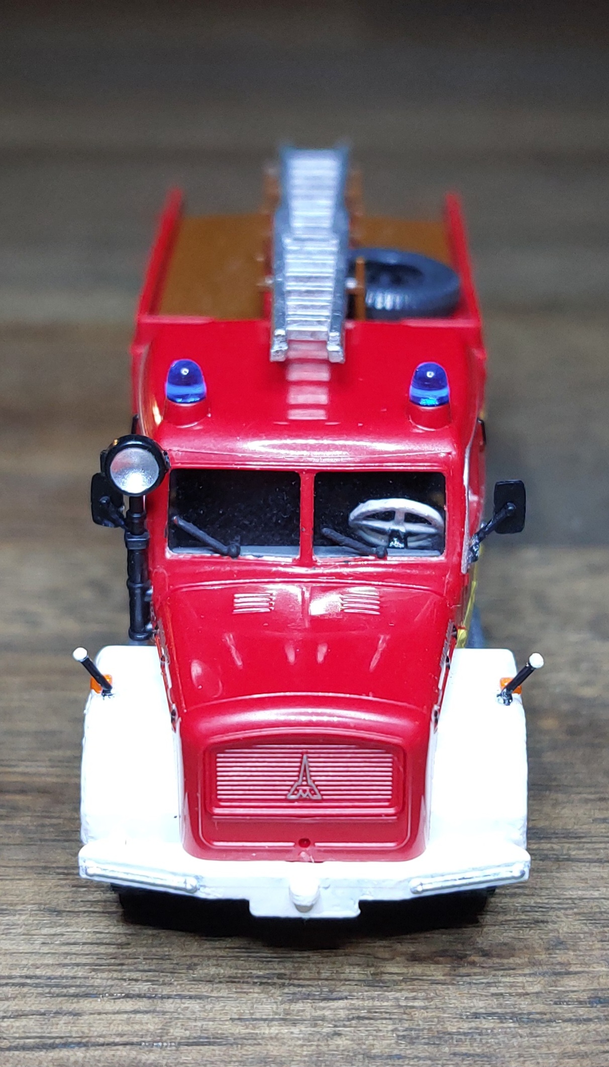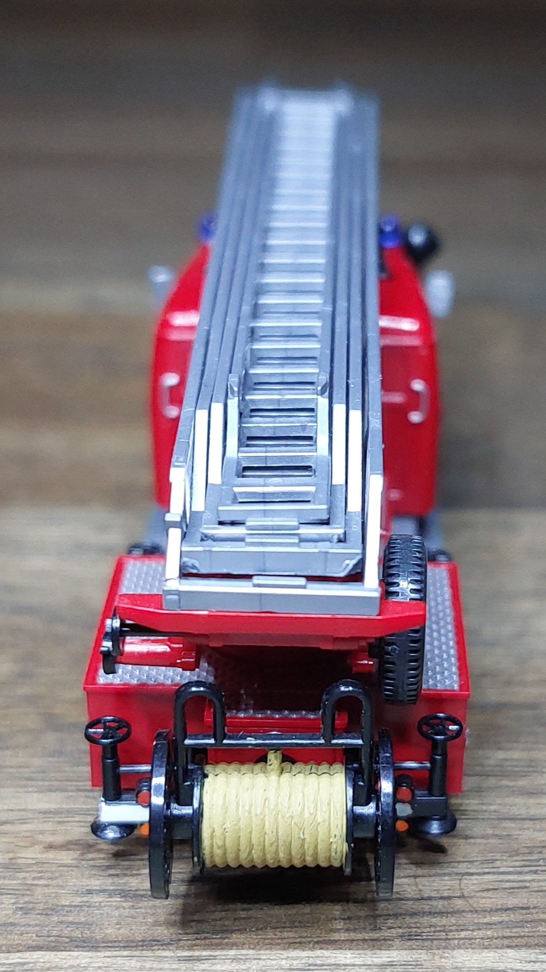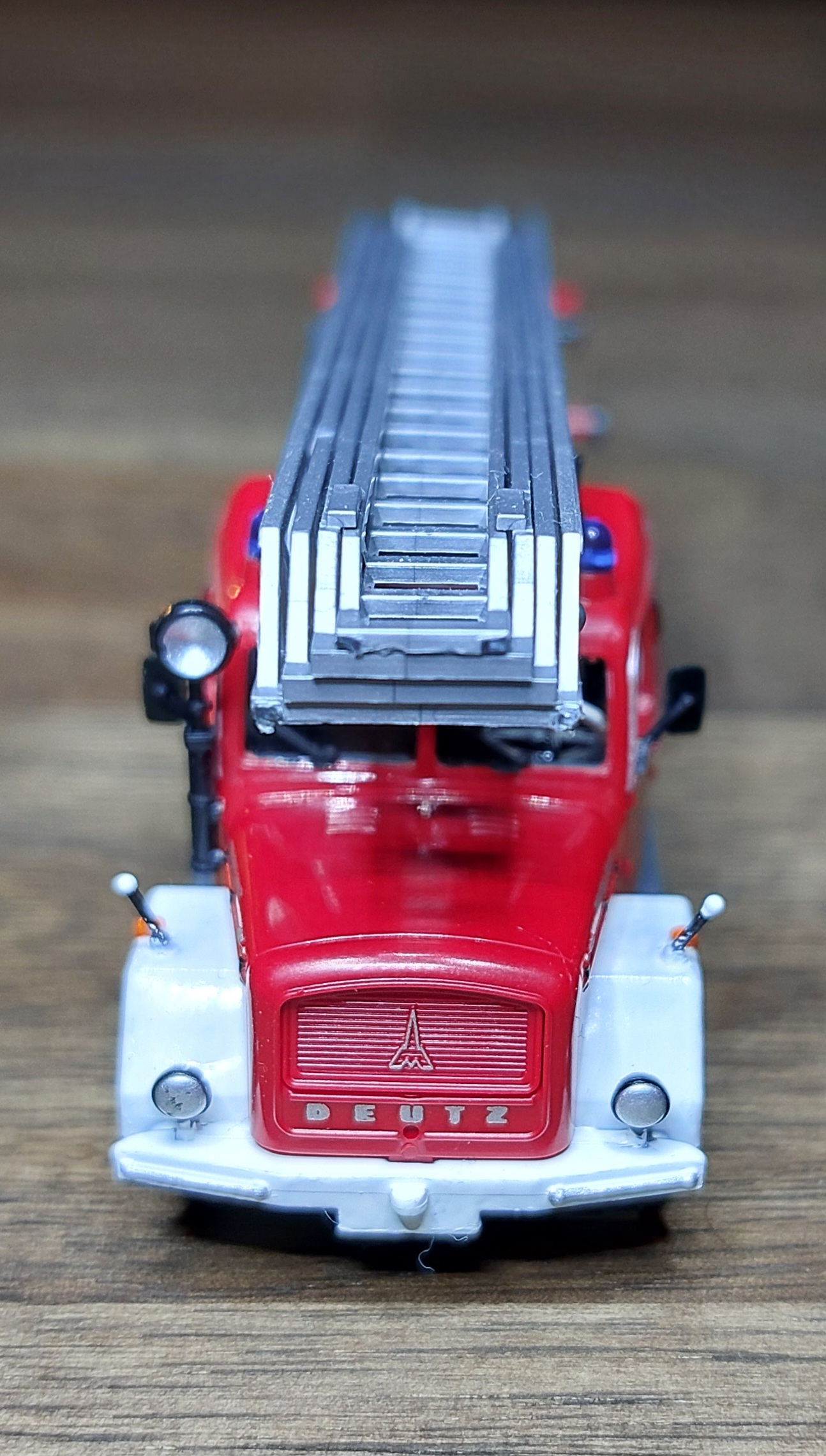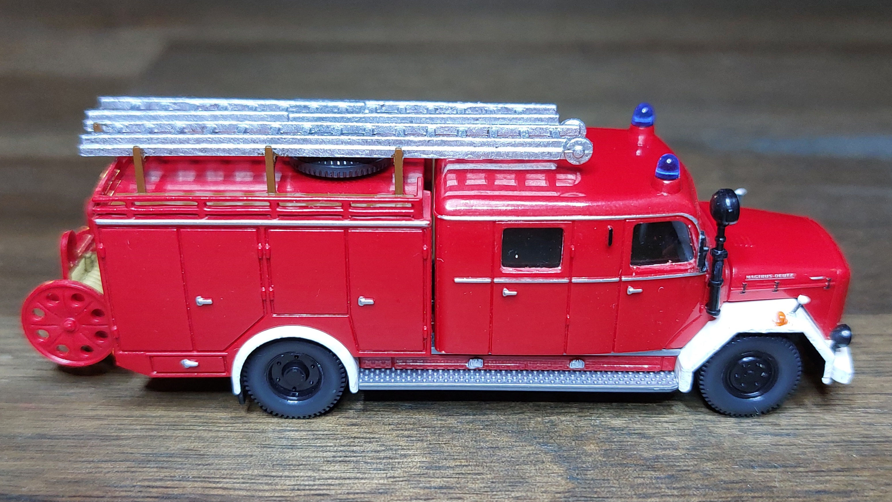 Das LF16 bekam, wie das TLF silberne Leitern, für die Alu-Optik. Ist vielleicht für Fahrzeuge aus den 60ern nicht unbedingt passend, aber so passen sie zu der Drehleiter.