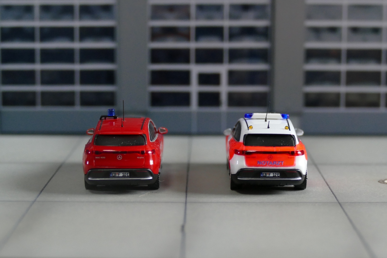Das Notarzt-Modell wurde aus einem weißen Herpa-Modell gefertigt, das abgeklebt und lackiert wurde.
