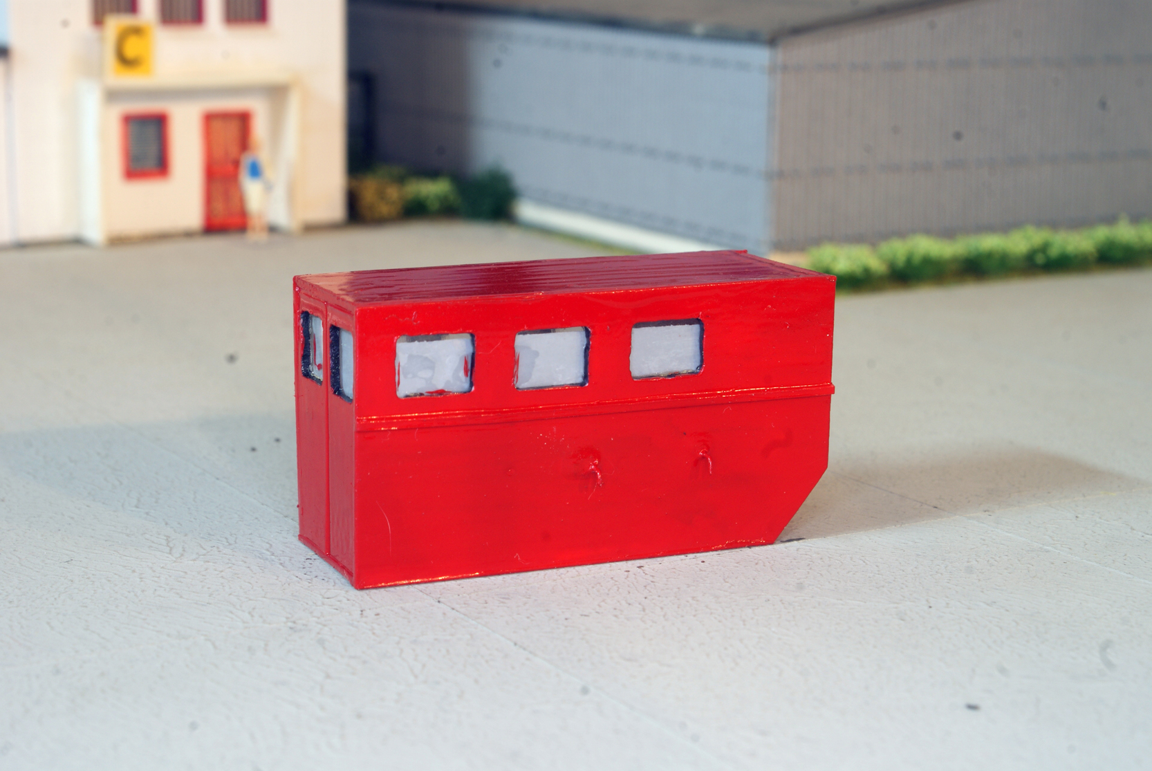 Das Vorbild für die Rettungszelle stand damals in ein BFM und mit der Erfahrungen von die PMS habe ich die komplett selber aus ein Polystyrolplatte gemacht. Nur beim Farben gab es einige Ausrutscher.