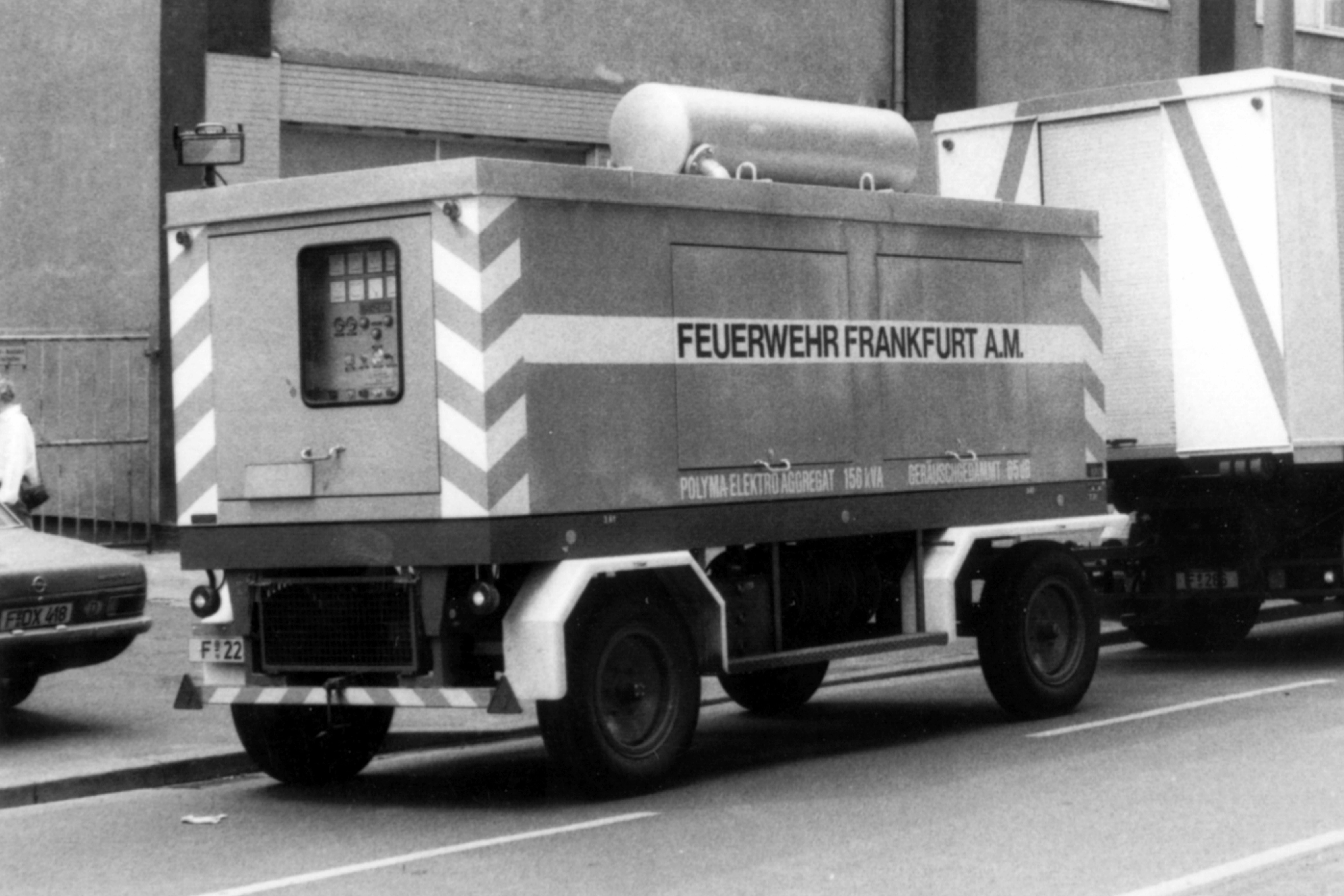 Es handelt sich um den Generatoranhänger GENA, Polyma PMB8/156/5, Bj. 81, F-224, der den größten Teil seiner Dienstzeit auf der FRW 7 in der Frankfurter Nordweststadt verbrachte.