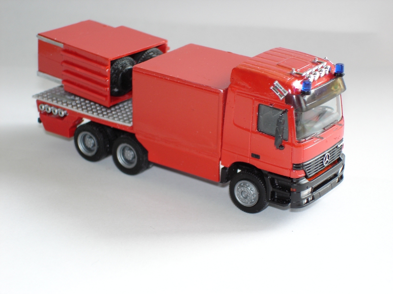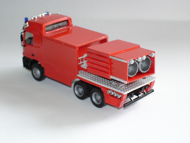 Und noch mein Turbolöscher auf MB Actros, angeregt durch das Fahrzeug der BASF. Auch dieses Fahrzeug ist noch nicht fertig, wie fast alle meiner Modelle. Wie fast immer habe ich mir Detaillierung, vor allem Detailbemalung, und Decals "für später" aufgehoben.
